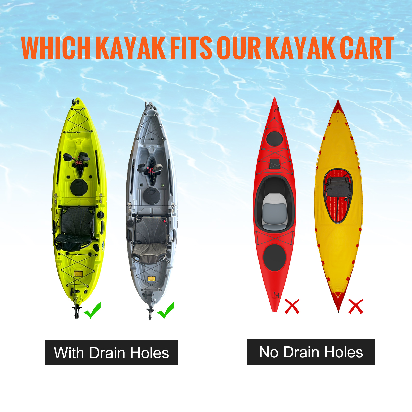 VEVOR Heavy Duty Kayak Cart, 280lbs Load Capacity, Detachable Canoe Trolley Cart With 10'' Solid Tires, Adjustable Width & Top Foam Protection, For Kayaks With Drain Holes Of 2.54cm And Above