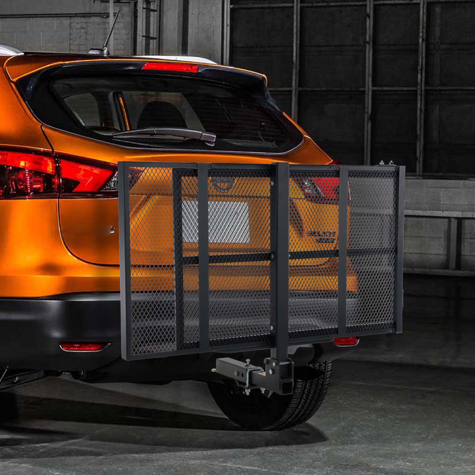 VEVOR Hitch Mount Cargo Carrier, Iron Hitch Cargo Rack With Folding Ramp, Hitch Rack Basket With Stabilizer And Straps, 500LBS Mobility Scooter Carrier Fit Hitch Receiver