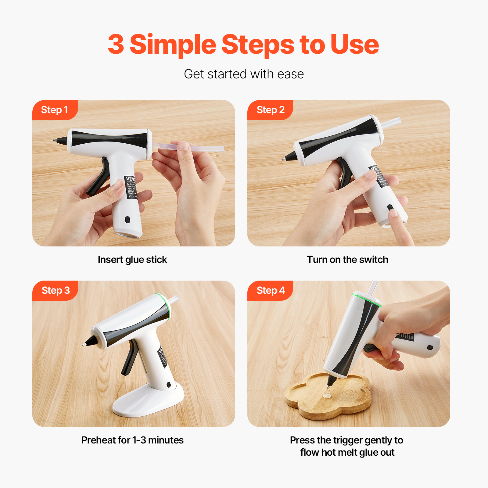 VEVOR Hot Glue Gun, Rechargeable Cordless Glue Gun, Mini Wireless Hot Glue Gun Kit With 2200mAh Battery, 20 Pcs Glue Sticks, Fast Preheating & High Temp, For Crafts, Arts, DIY, Quick Home Repairs