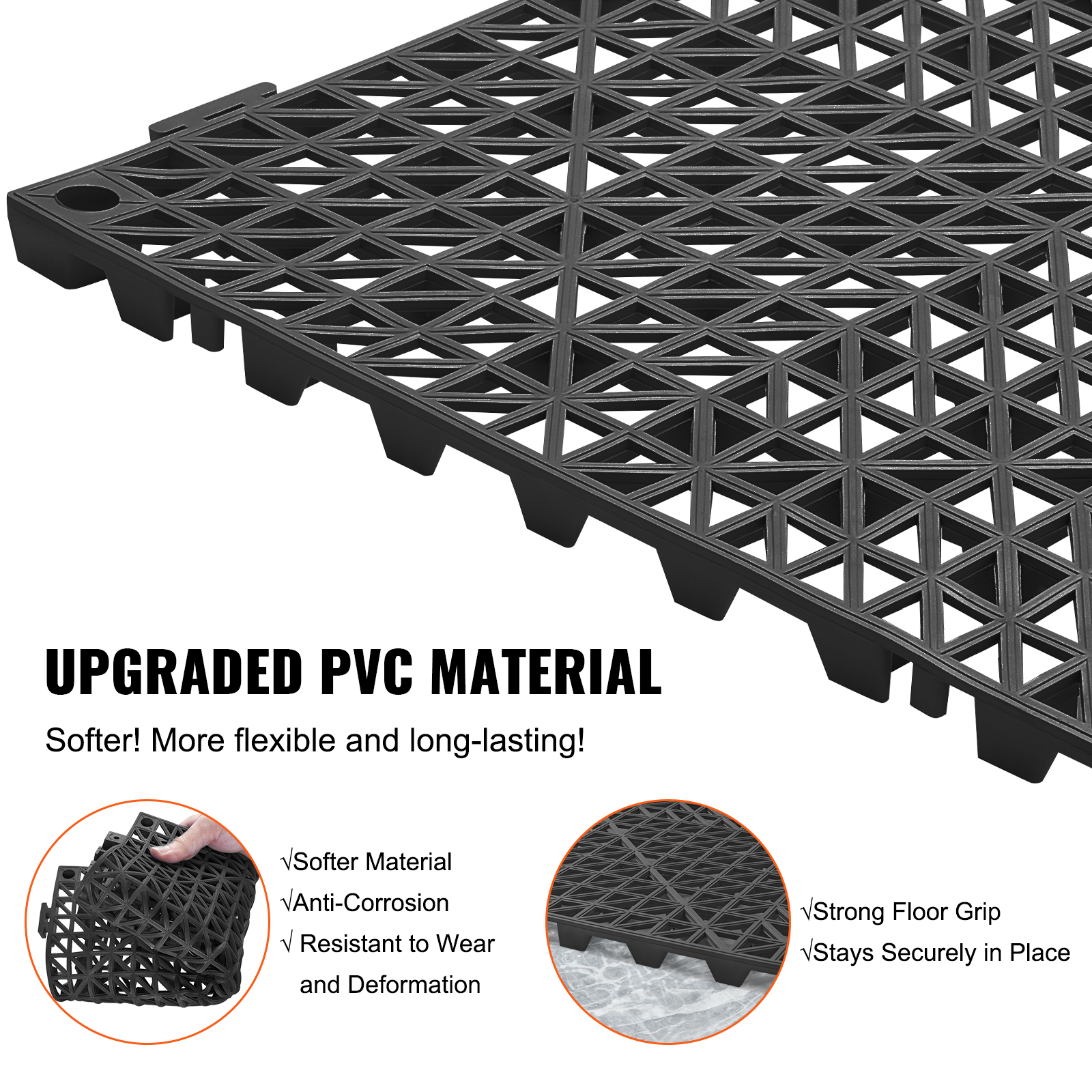 VEVOR Interlocking Tile 50PCS Black, Drainage Tiles Splicing, Soft PVC Interlocking Drainage Floor Tiles, Non-Slip Drainage Holes For Restroom, Bathroom, Kitchen, Pool, Wet Areas