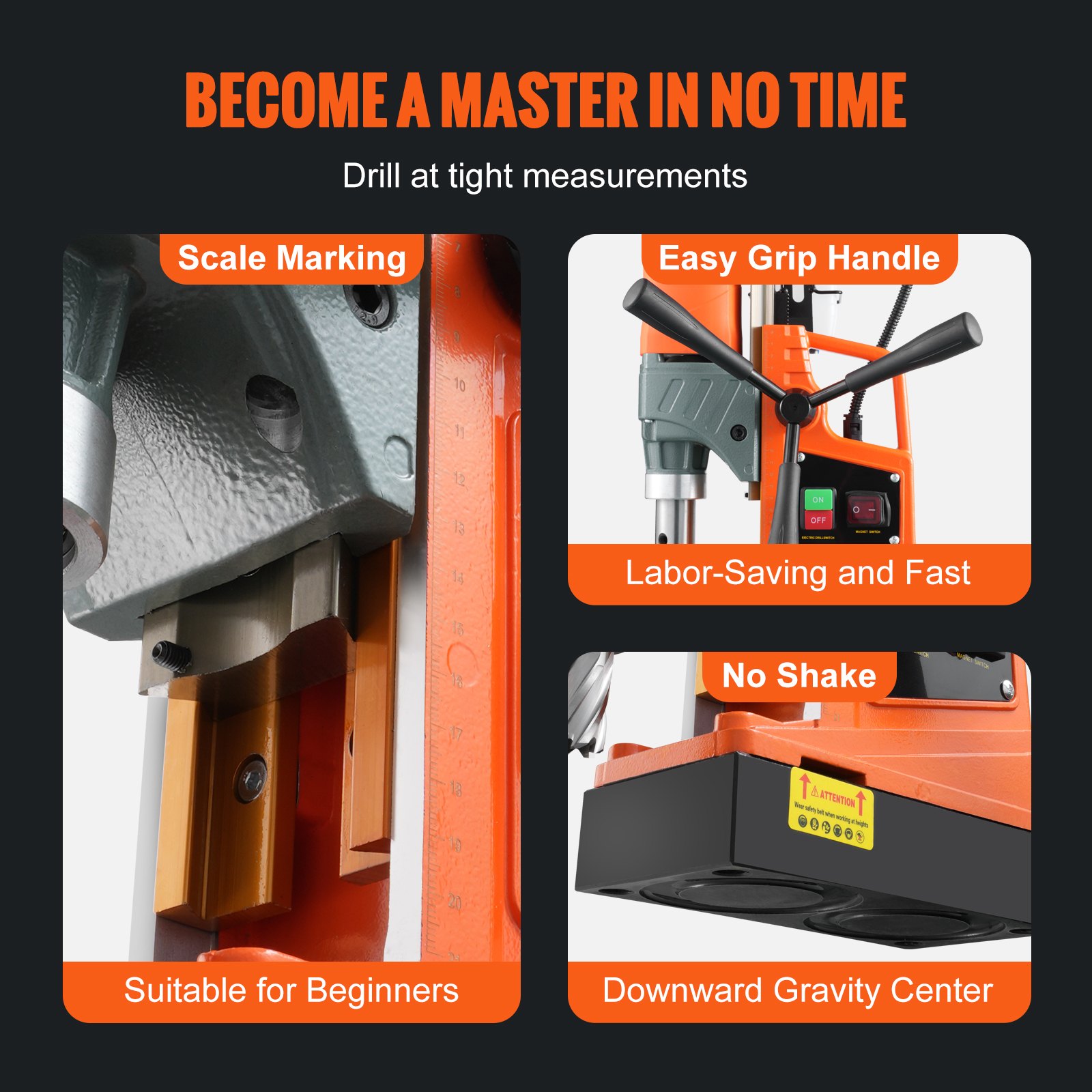 VEVOR Magnetic Drill, 1450W Boring Diameter, 12500N 850 RPM Portable Electric Mag Drill Press, Drilling Machine For Any Surface Home Improvement Industry Railway