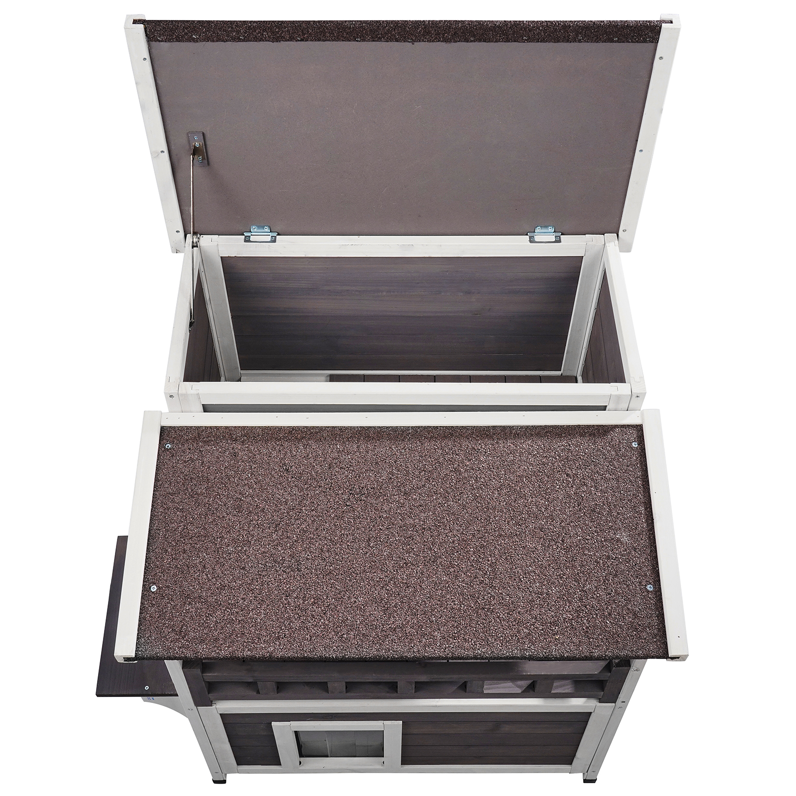 VEVOR Outdoor Cat House 2-story Wooden Feral Cat Shelter With Balcony & Roof
