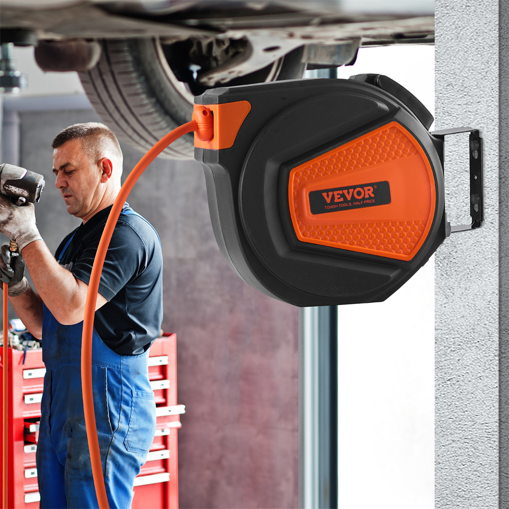 VEVOR Retractable Air Hose Reel, 3 8 IN X 50 FT Hybrid Air Hose Max 300PSI, Air Compressor Hose Reel With 5 Ft Lead In, Ceiling Wall Mount Enclosed Air Reel, 180 Swivel Mount