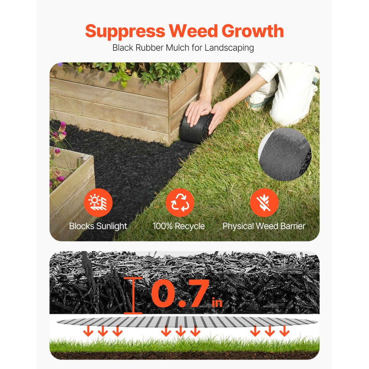 VEVOR Rubber Mulch For Landscaping, 2 Rolls Recycled Rubber Mulch Mat 120 X 4.5 In, Permanent Rubber Pathway, Natural-Looking Black Mulch Garden Edging For Plants, Vegetables & Flower Garden Barrier