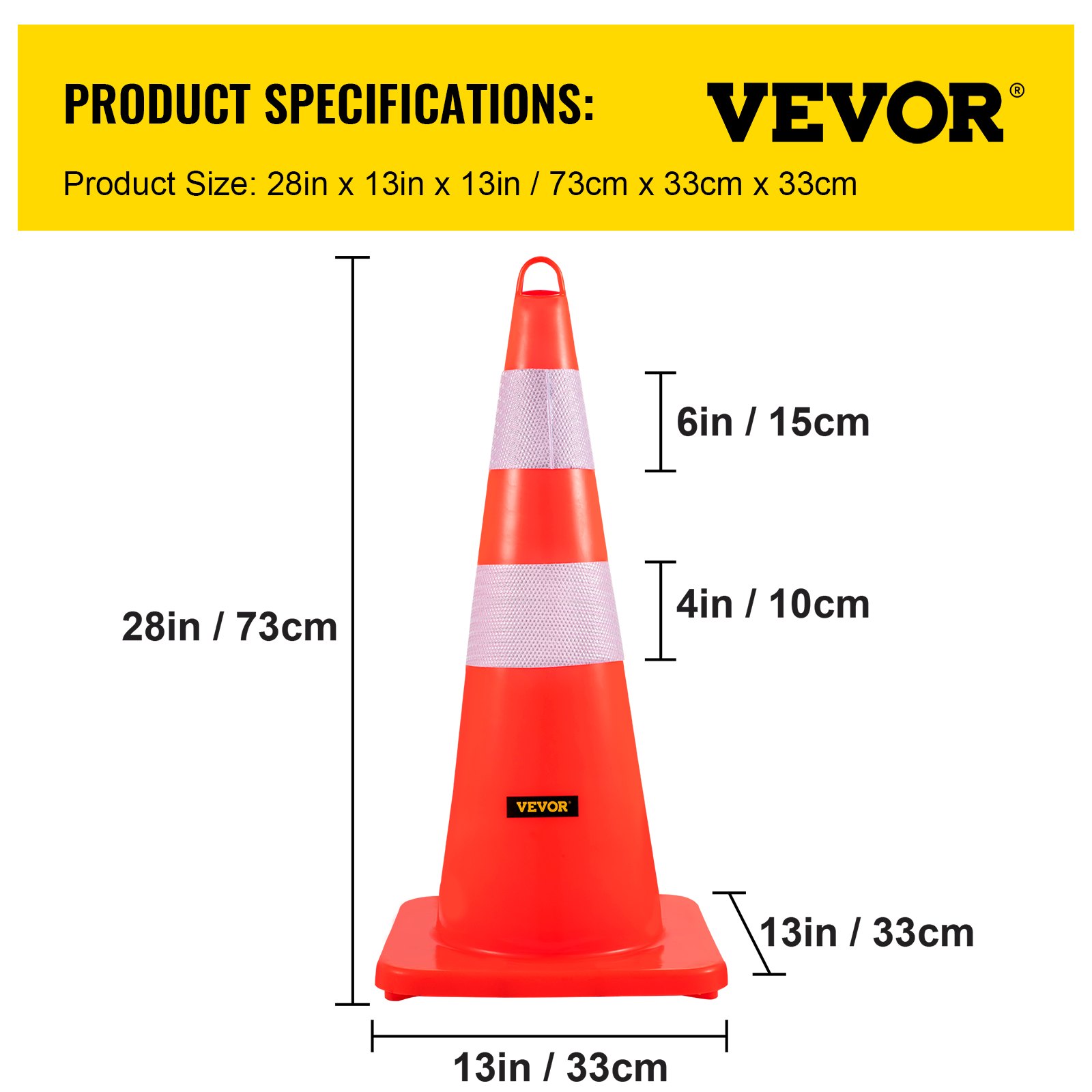 VEVOR Safety Cones, 10PCS Traffic Cones, PVC Orange Construction Cones, 2 Reflective Collars Traffic Cones With Weighted Base And Hand-Held Ring Used For Traffic Control, Driveway Road Parking
