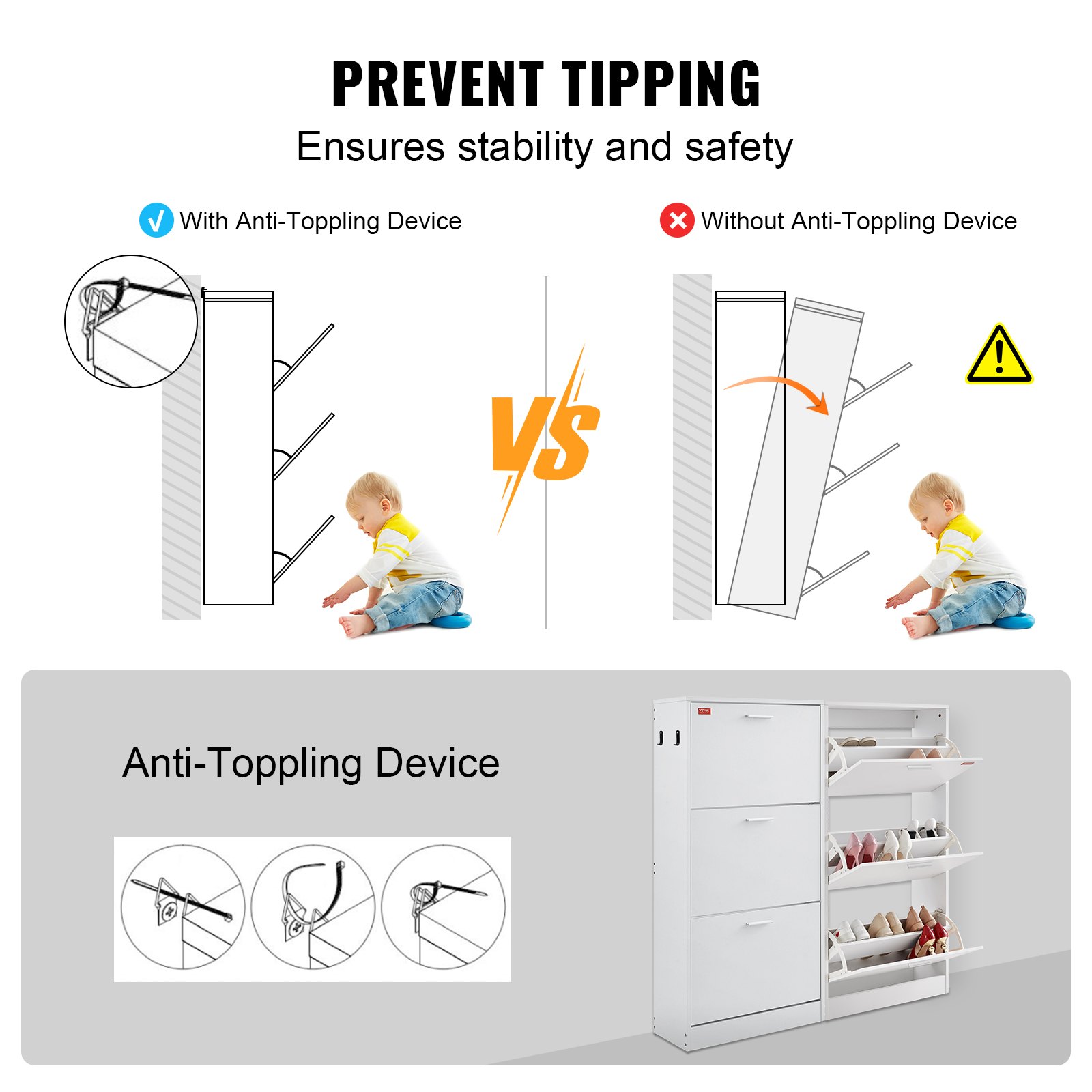 VEVOR Shoe Cabinet With 3 Flip Drawers, Shoe Storage Cabinet For Entryway, Free Standing Shoe Storage Organizer With Side Hooks For Heels, Boots, Slippers In Hallway, Living Room