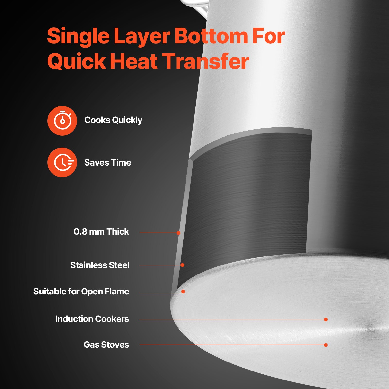 VEVOR Stainless Steel Stockpot, 42 Quart Large Cooking Pots, Cookware Sauce Pot With Strainer, Lid, And Handle, Heavy Duty Commercial Grade Stock Pot, Sanding Treatment, For Large Groups Events Silver