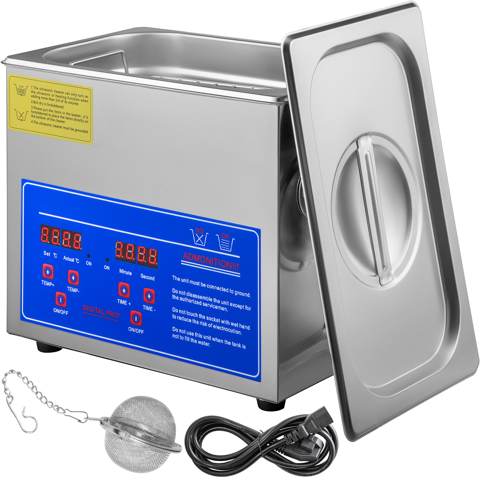 VEVOR Ultrasonic Cleaner With Digital Timer Heater, Professional Ultra Jewelry Cleaner, Stainless Steel Heated Cleaning Machine For Glasses Watch Rings Small Parts Circuit Board