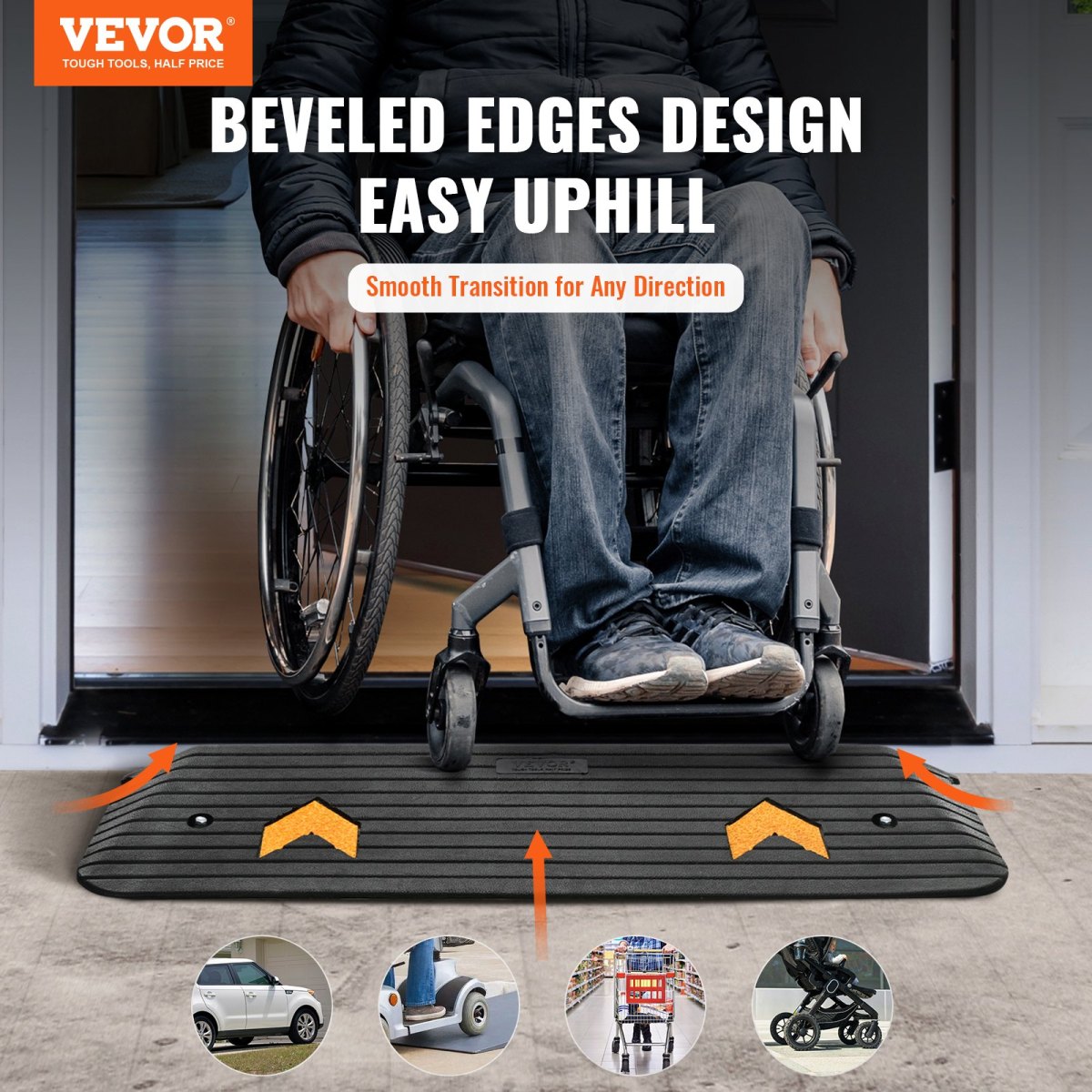VEVOR Upgraded Rubber Threshold Ramp, Rise Wheelchair Ramp Doorway, Natural Curb Ramp Rated 33069 Lbs Load Capacity, Non-Slip Textured Surface Rubber Curb Ramp For Wheelchair And Scooter