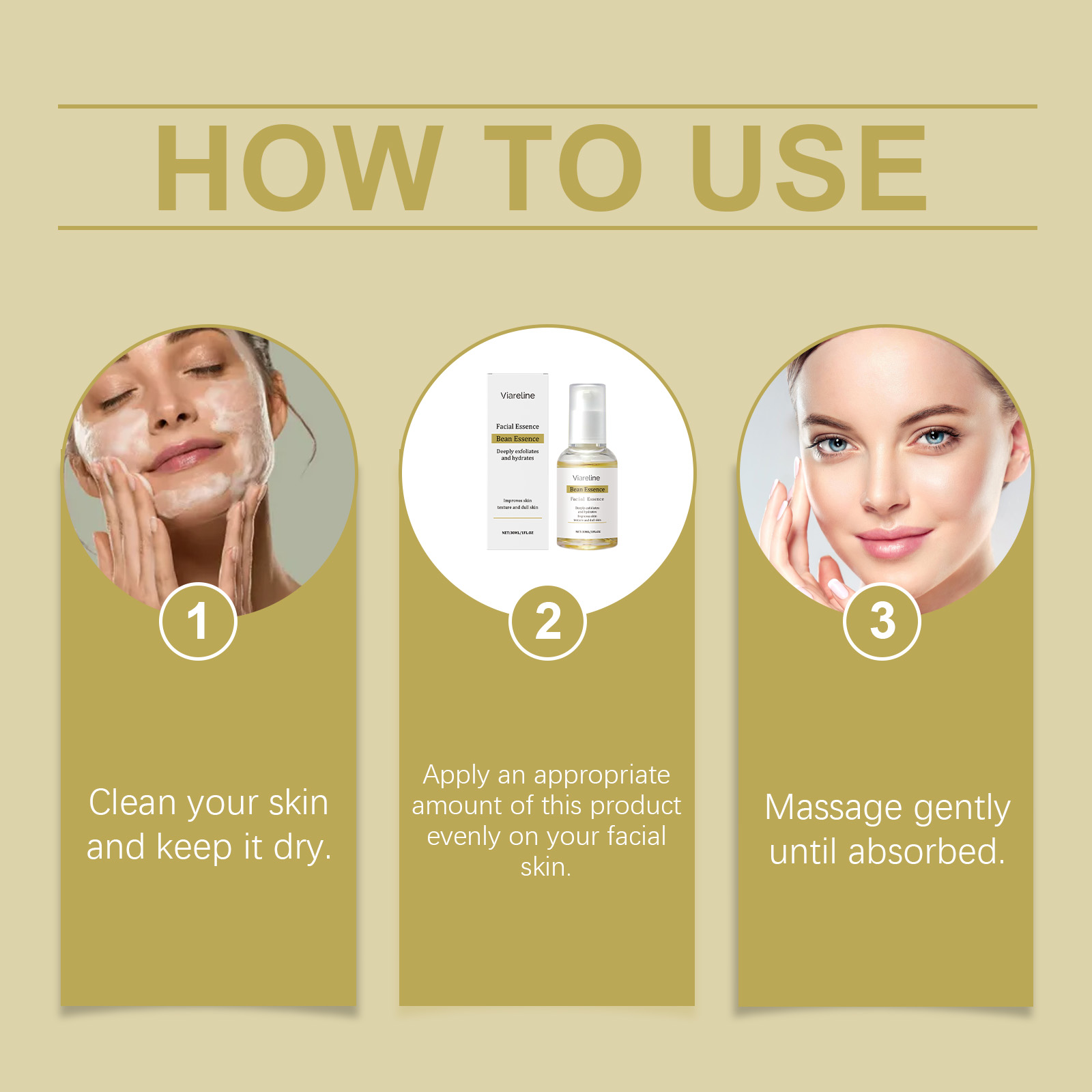 Our skin care essence is carefully formulated with soy extract and disodium ethylenediaminetetraacetate. Designed specifically for gently removing old and dead skin cells. The usage method is extremely convenient: clean the skin and keep it dry. Apply an appropriate amount of this product evenly to the facial skin. Gently massage until absorbed. And it can effectively fade dark spots and pigmentation, brighten the complexion and bring out radiant and beautiful skin.