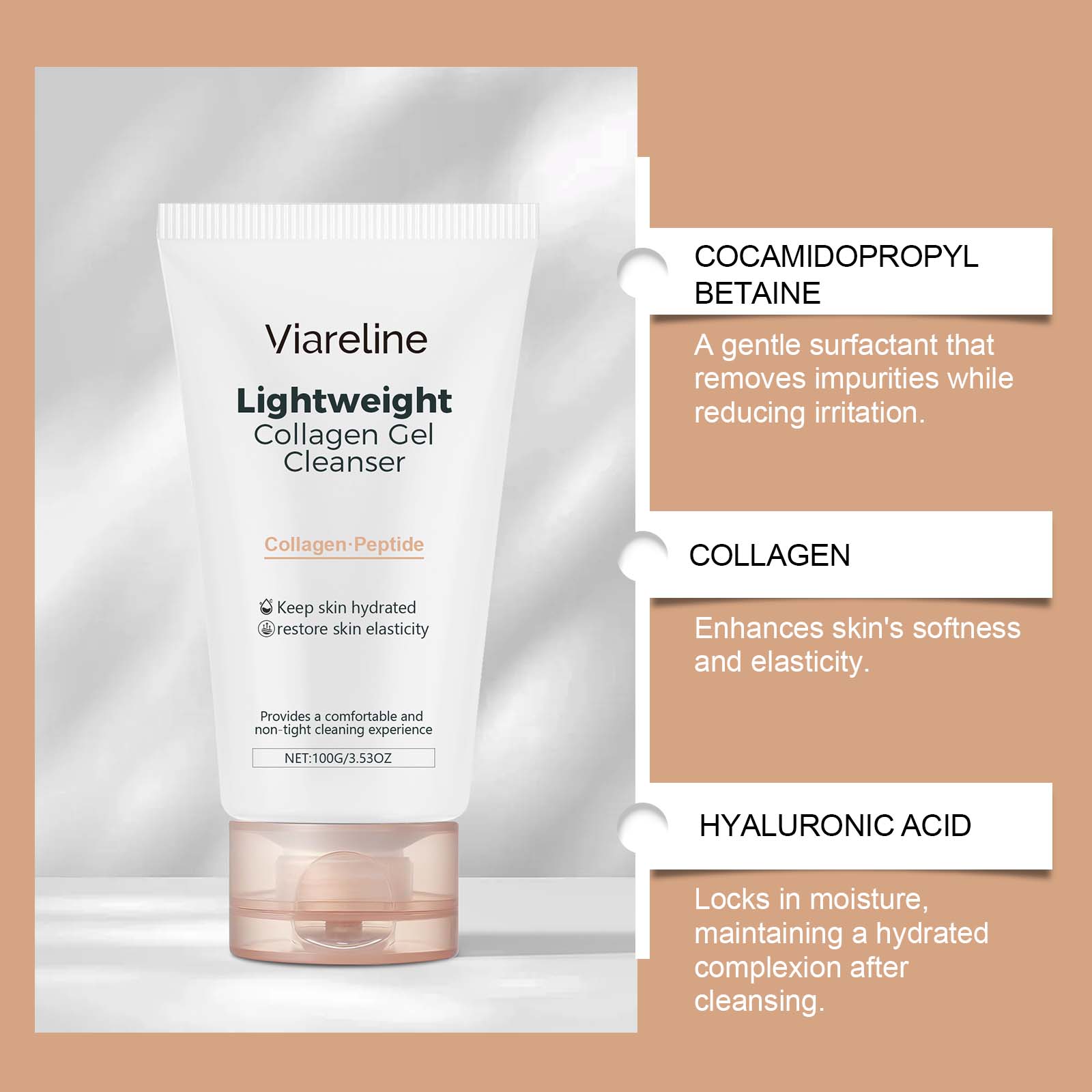 Our facial cleanser is carefully formulated with collagen and hyaluronic acid. Designed specifically to penetrate pores and remove oil and dirt. The usage method is extremely convenient: Take an appropriate amount of this product in the palm of your hand and rub it to create foam. Massage and clean your face for 1 to 2 minutes. Wash it clean and keep it dry. And after washing, it makes the skin soft and moist, without dryness.