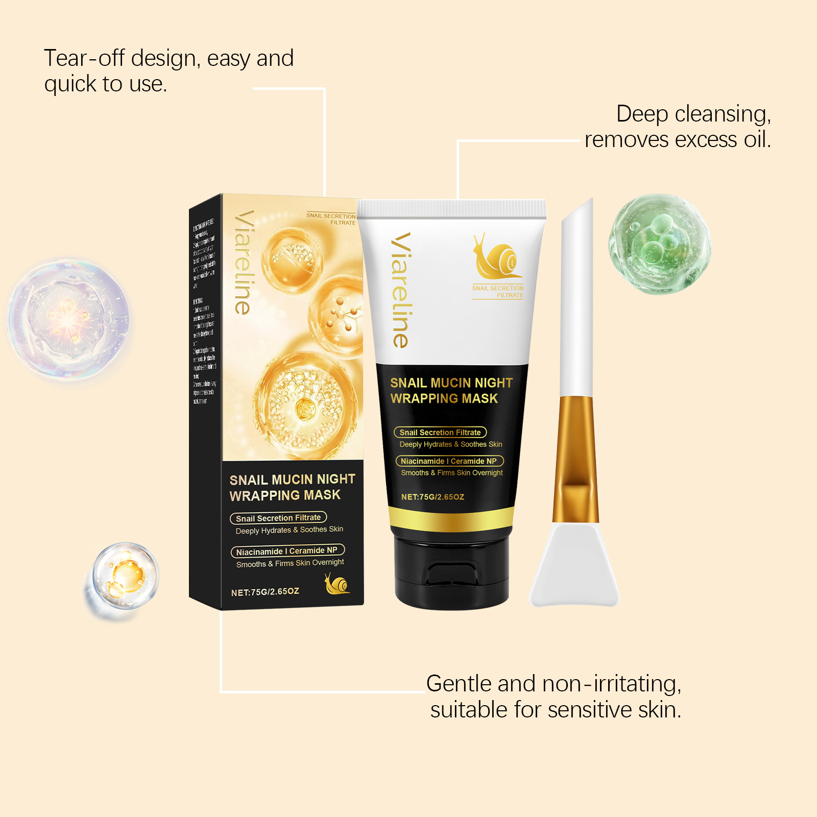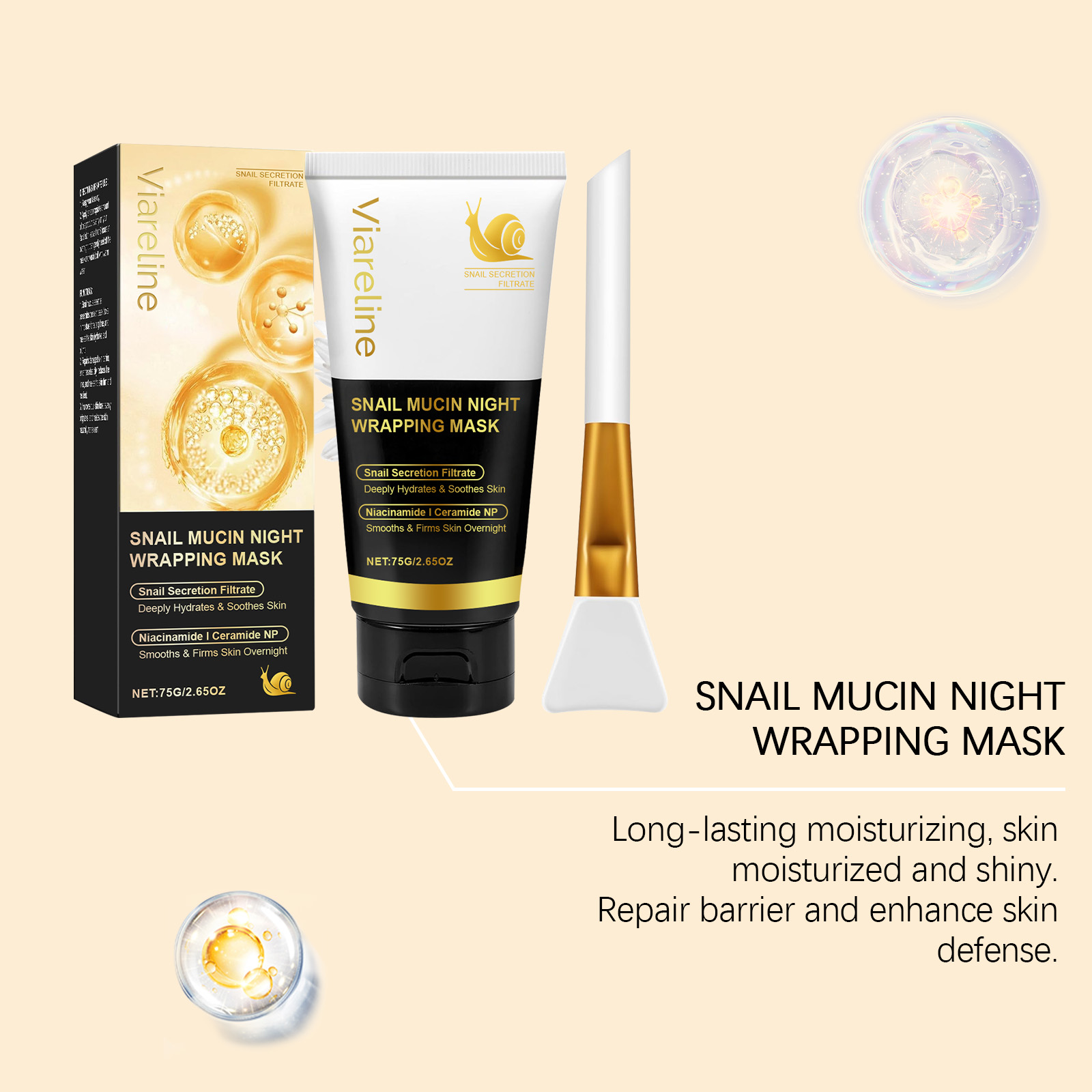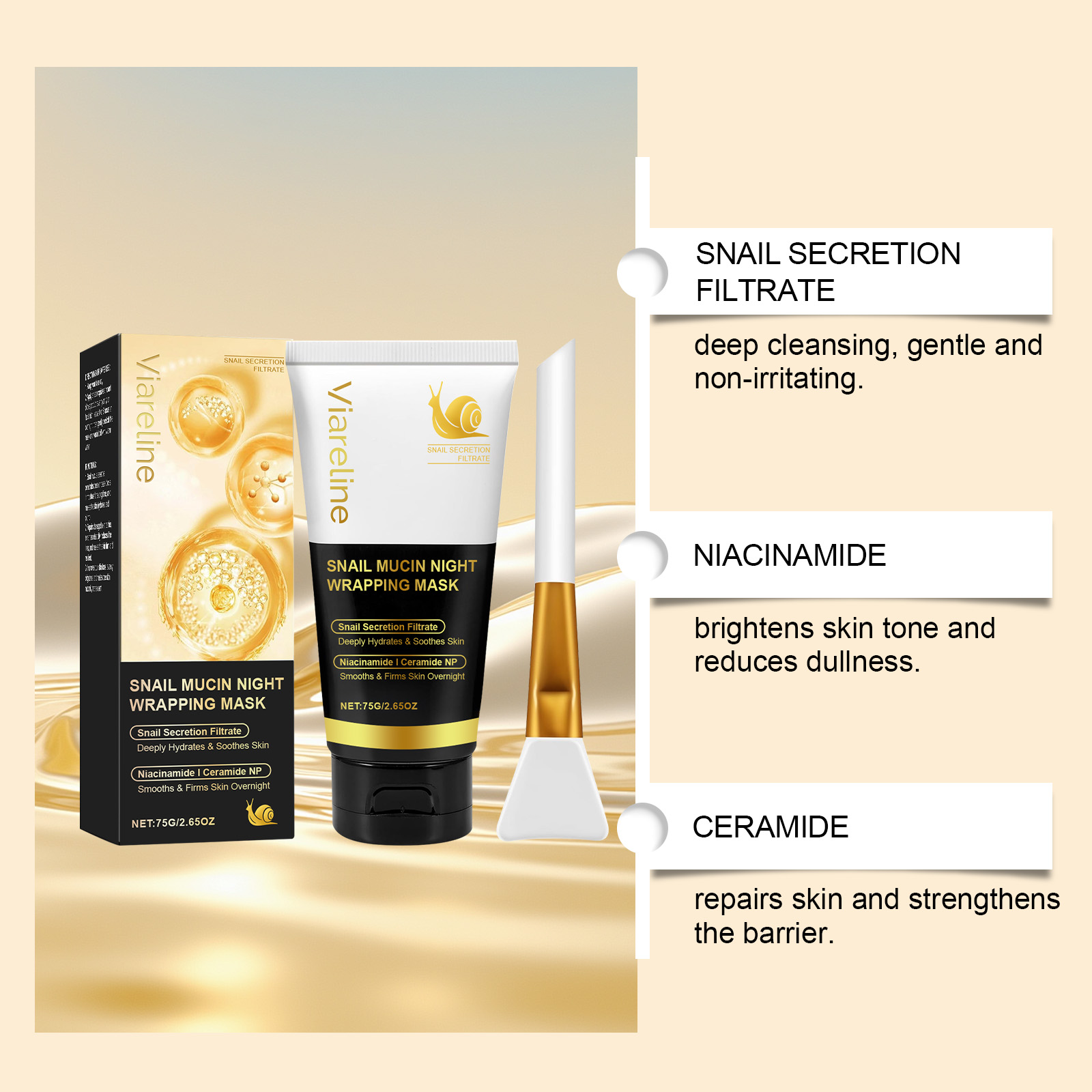Our turmeric sleeping mask is carefully formulated with polyvinyl alcohol and glycerin. Designed specifically for moisturizing and locking in moisture. The usage method is extremely convenient: keep the face dry. Apply an appropriate amount of this product evenly to the facial skin, leave it on for 8 hours or overnight, then gently remove the mask and wash it off with warm water. Tear off the dirt and clean the pores. And it contains ceramide components, which can repair the skin.