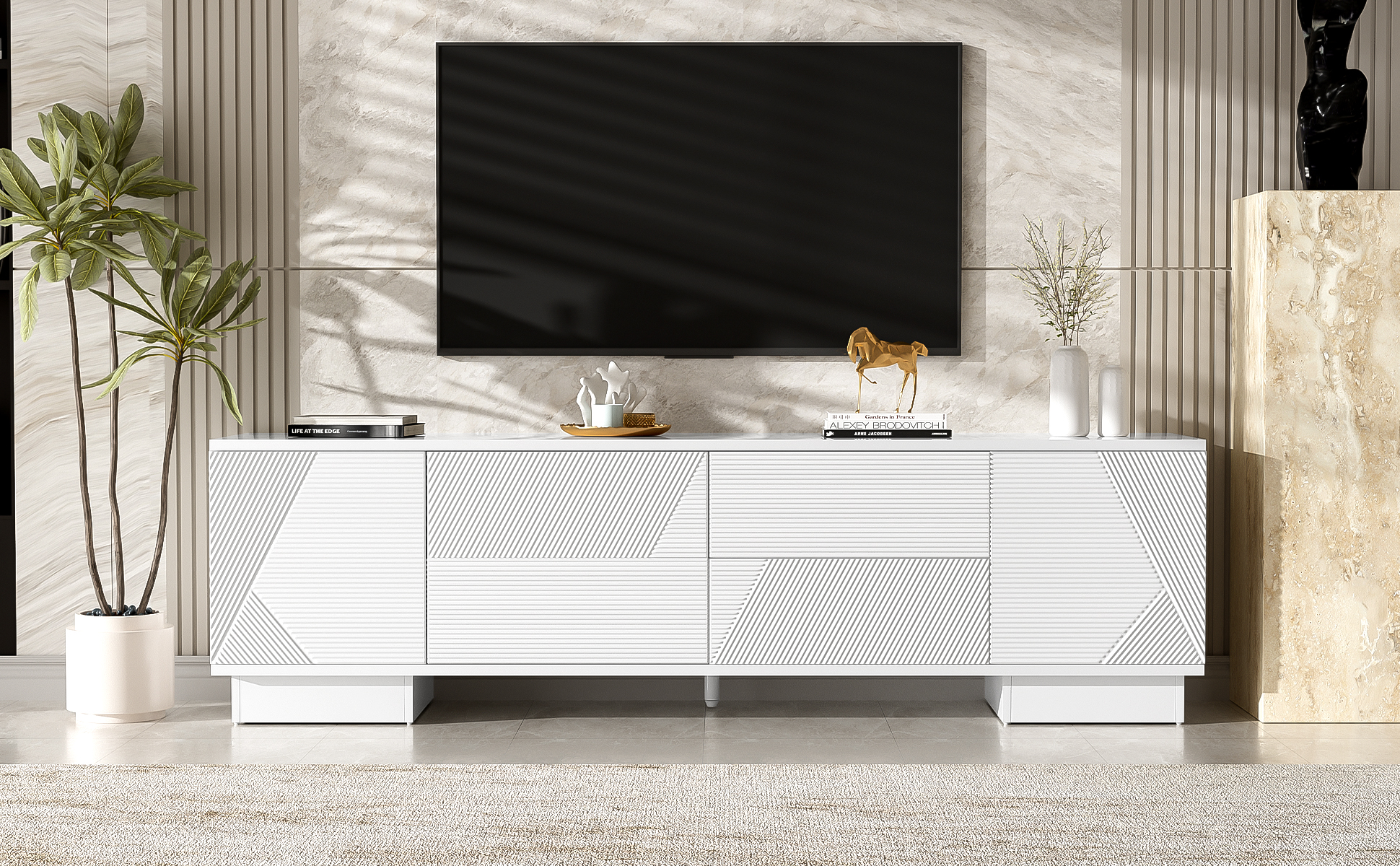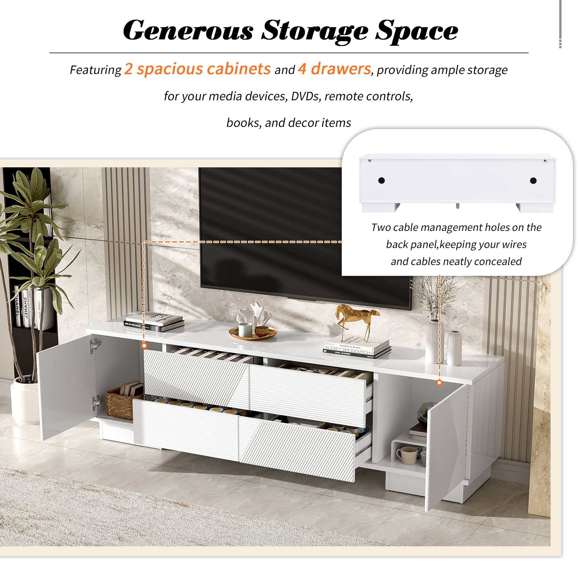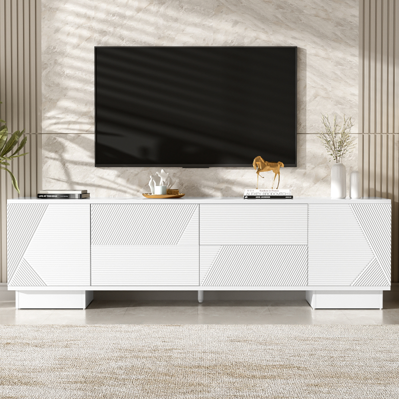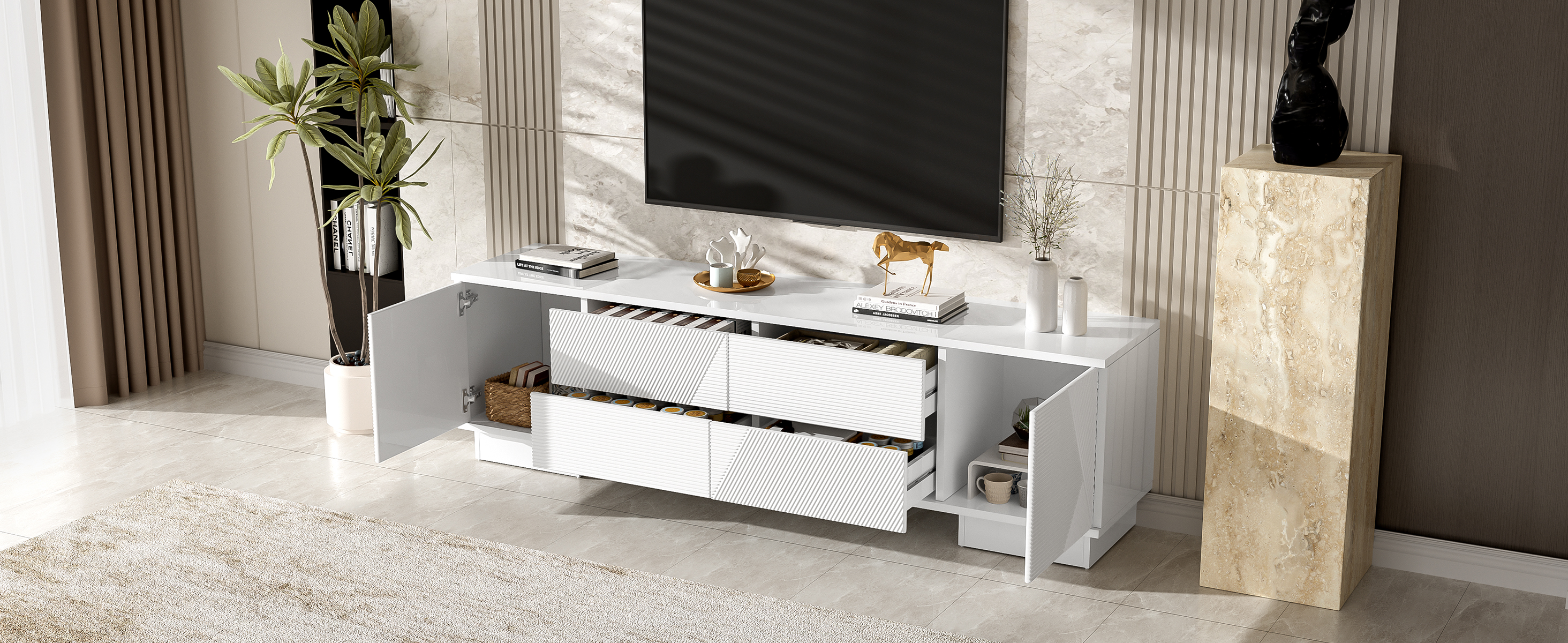 Featuring 2 spacious cabinets and 4 drawers, providing ample storage for your media devices, DVDs, remote controls, books, and decor items.