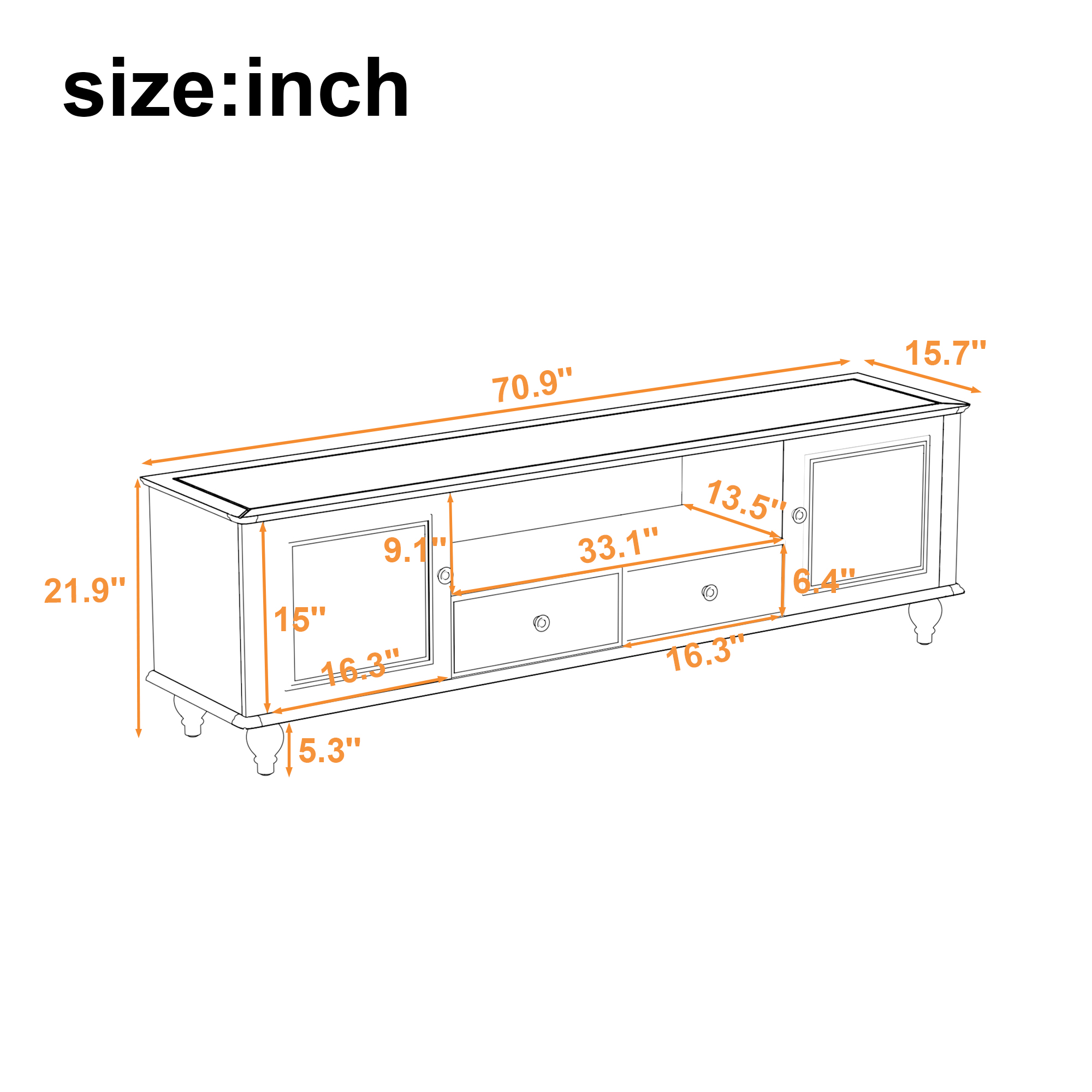 Product Name:VIBE HAUS 70.9'' Modern TV Stand for TVs up to 80 Inches, Entertainment Center with Open Compartment, TV Storage Cabinet with 2 Drawers, 2 Cabinets and 5 Solid Legs for Living room
