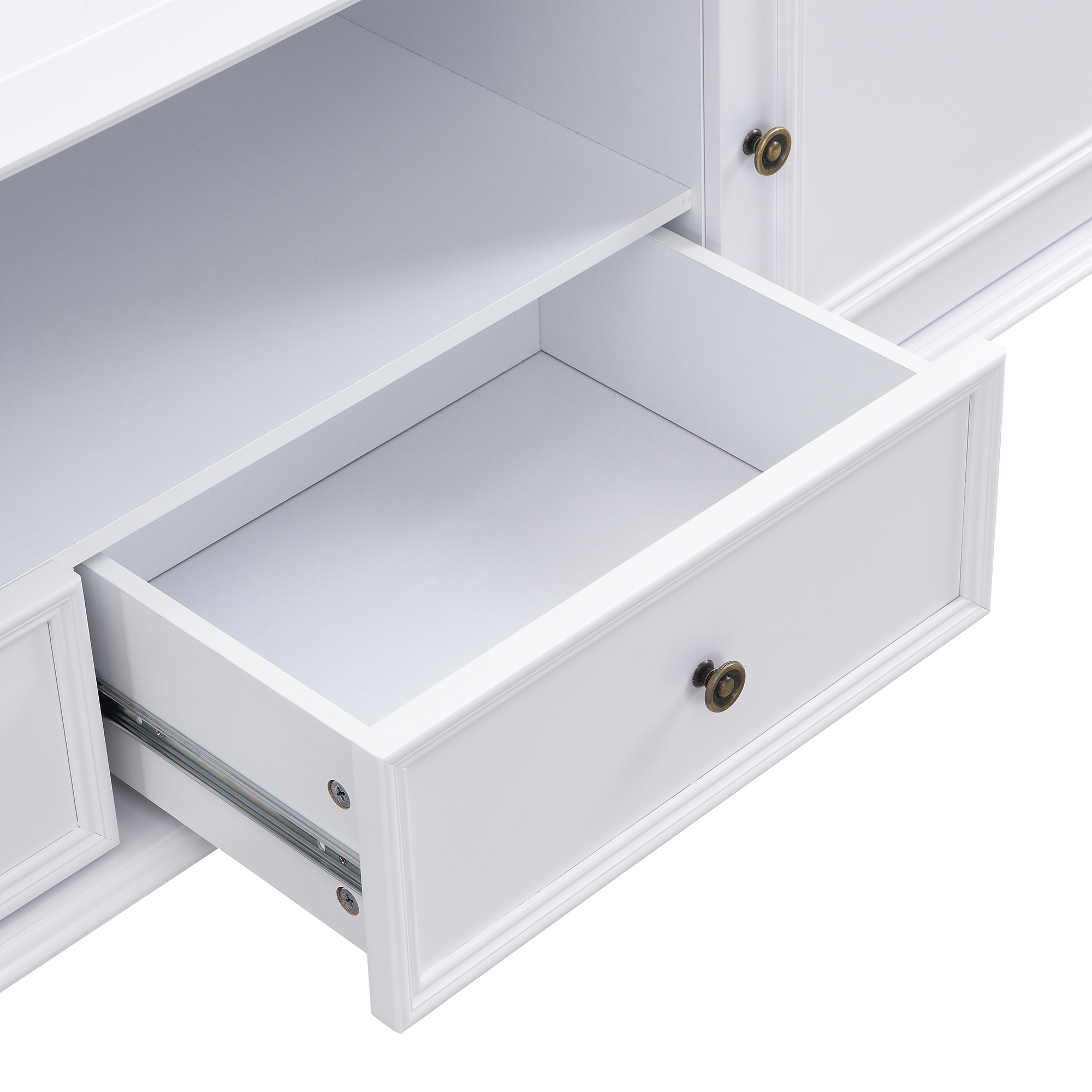 Blending thoughtful functionality with modern minimalist charm, this TV stand features two spacious cabinets, two drawers, and two open shelves to neatly organize media equipment, collections, and decor. Embodying sleek contemporary style through clean lines and understated design, it effortlessly enhances any room’s aesthetic. Prioritizing both strength and elegance, it’s built with five Roman-column legs for exceptional stability and premium MDF for long-lasting durability. Including an anti-tip safety device and coming with labeled parts and illustrated instructions, it ensures a quick, straightforward assembly.