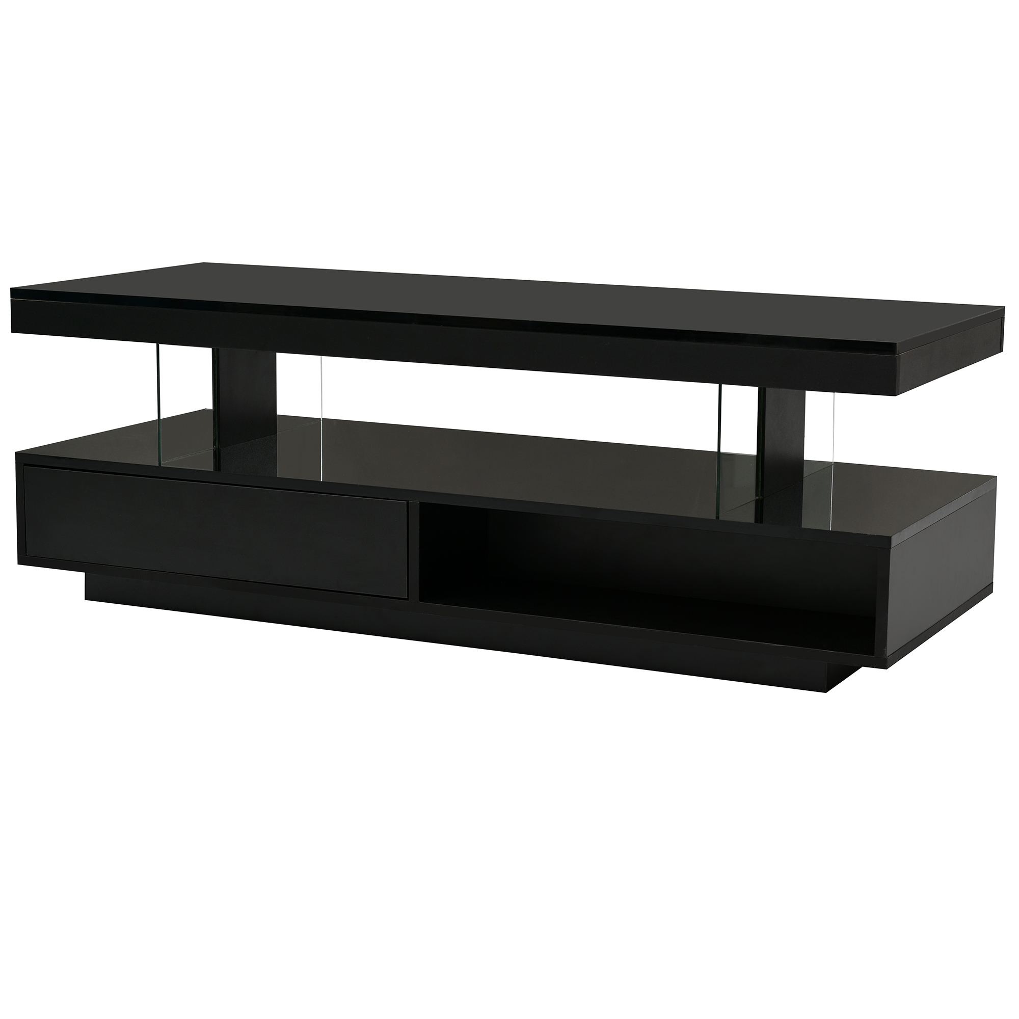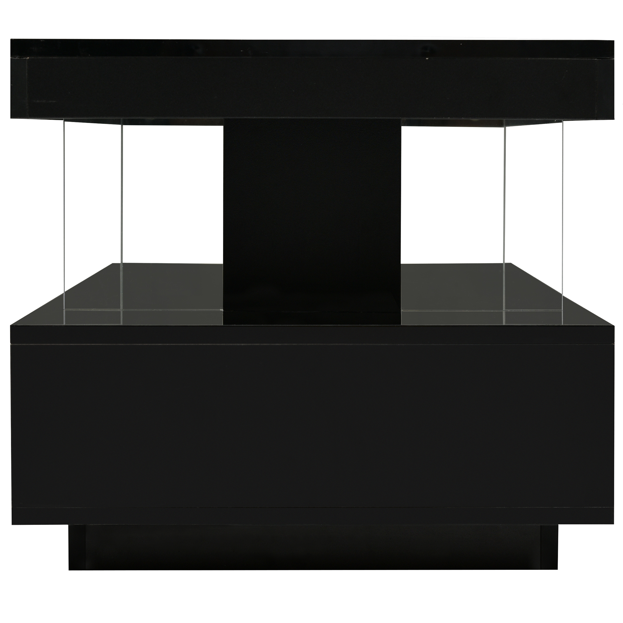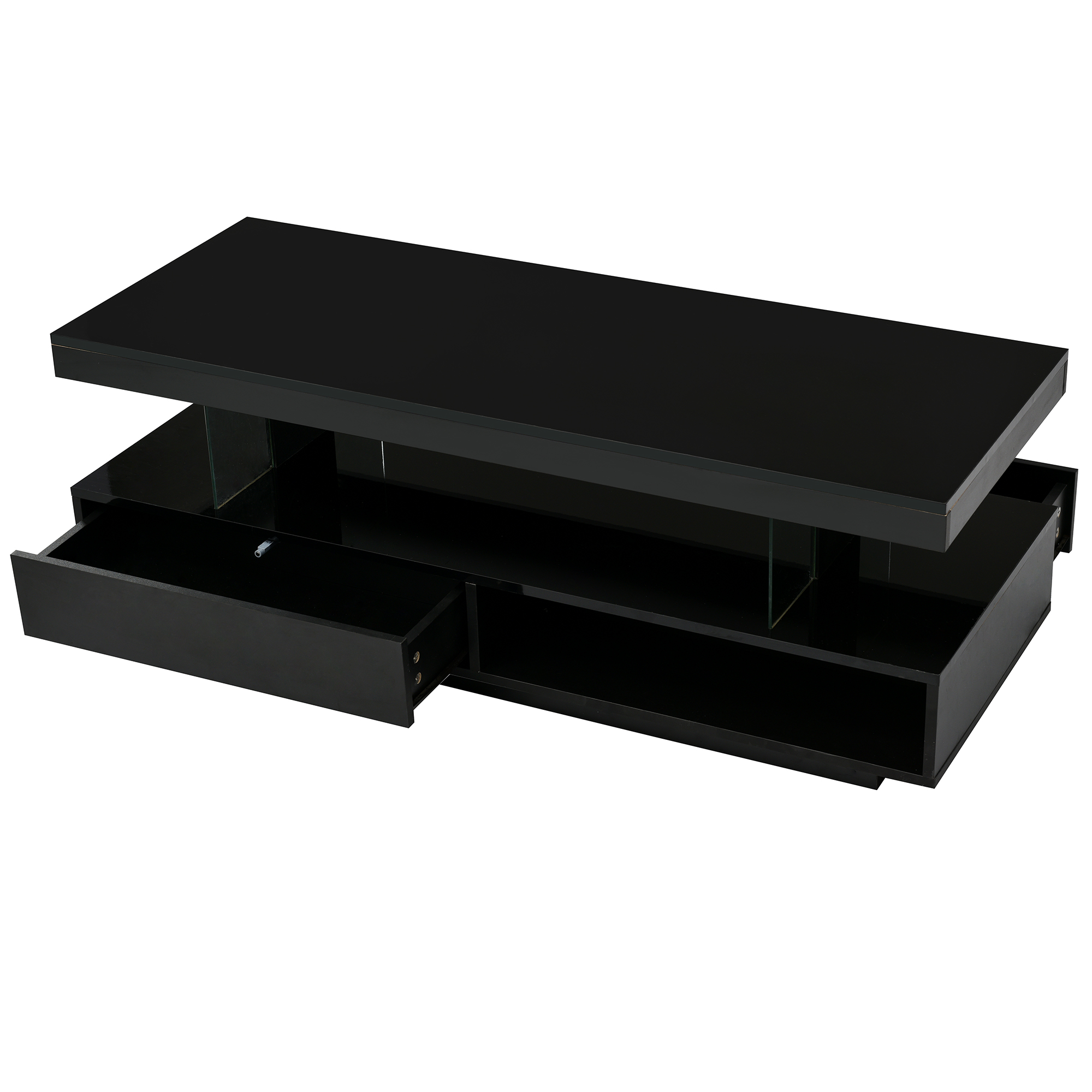 Product Name:VIBE HAUS LED Coffee Table with Storage, Modern Center Table with 2 Drawers and Display Shelves, Accent Furniture with LED Lights for Living Room,Black