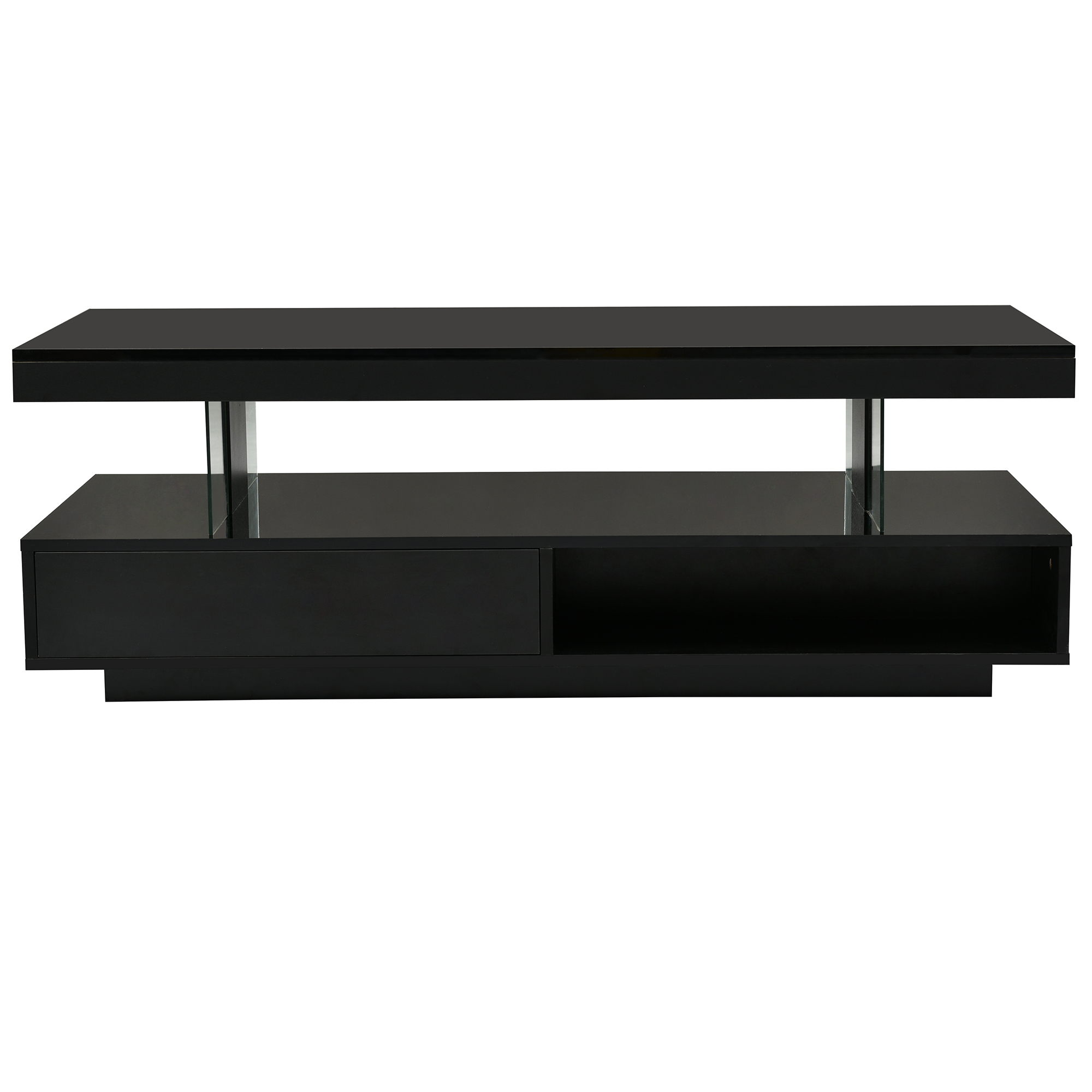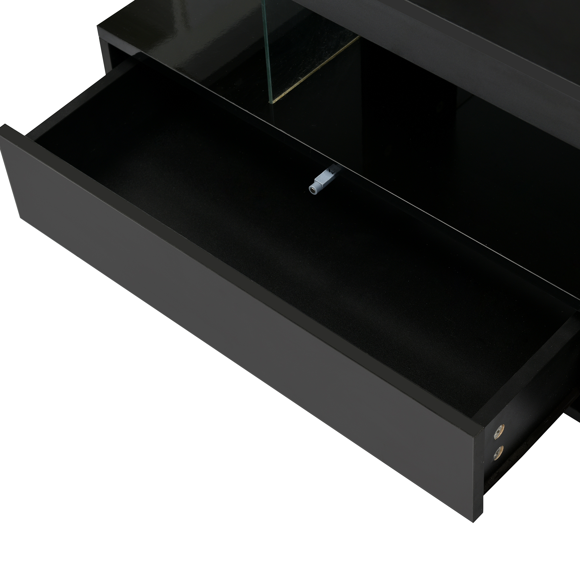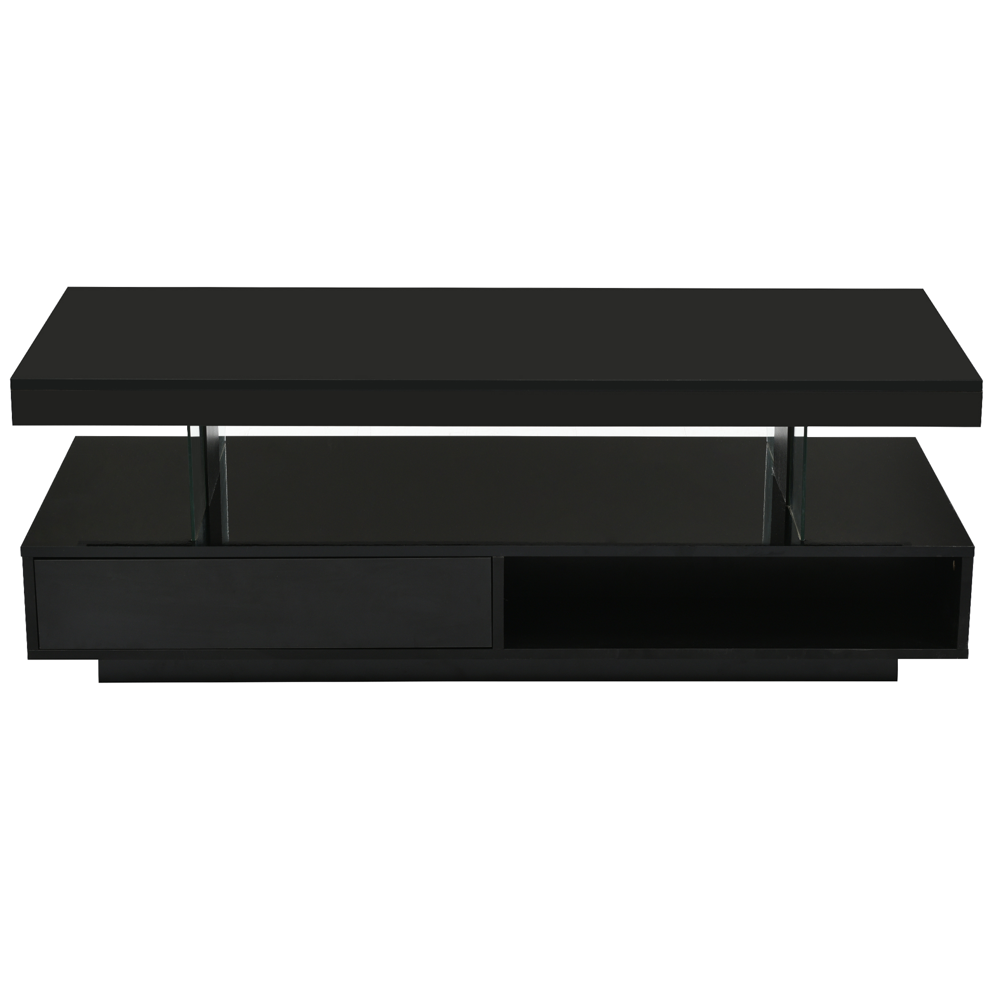 Product Name:VIBE HAUS LED Coffee Table with Storage, Modern Center Table with 2 Drawers and Display Shelves, Accent Furniture with LED Lights for Living Room,Black