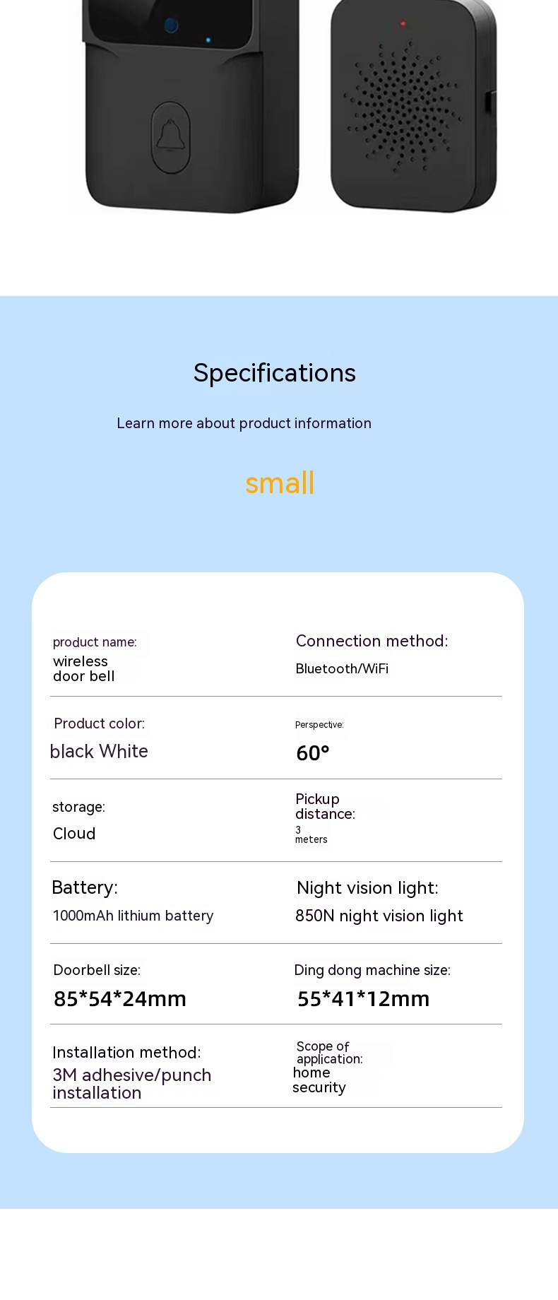 Door bell size: 85 * 54 * 24mm