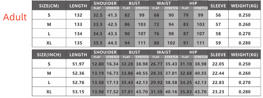 Size: Children S, children M, children L, children XL, adult S, adult M, adult L, adult XL