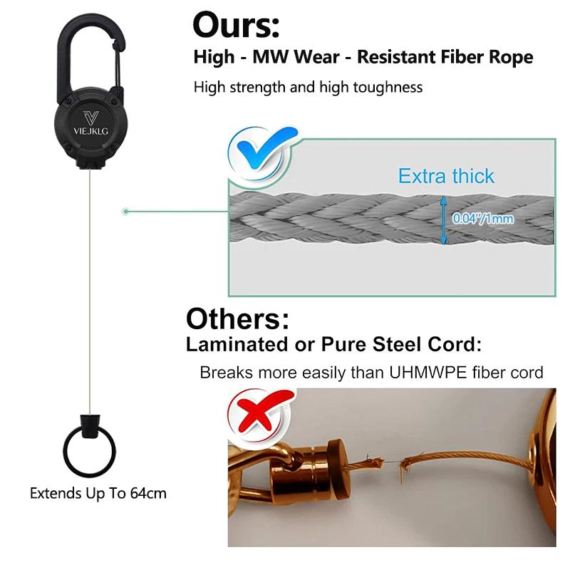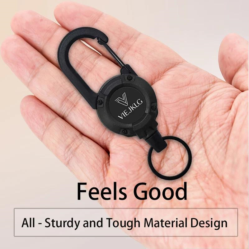 VIEJAKLG 3-in-1 Retractable Rope Carabiner Keychain, Strong Steel Wire Rope Buckle, Compact Outdoor Camping And Hiking Multifunctional Essential Item
