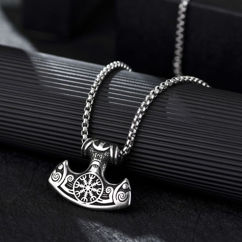 Viking Boat Snow Pattern Hammer Pendant Necklace