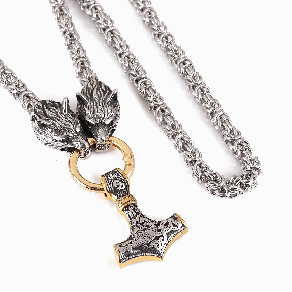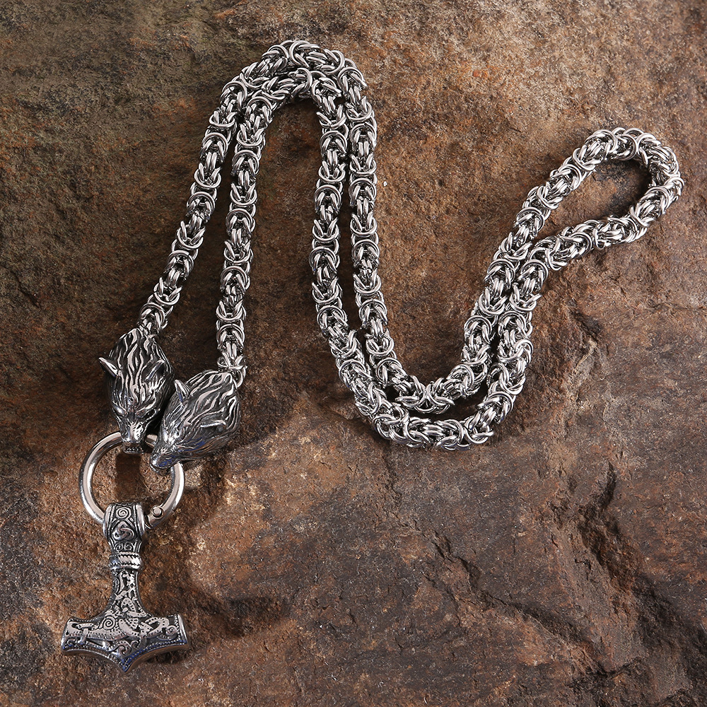 Material: stainless steel wolf head + stainless steel ring chain + stainless steel hammer