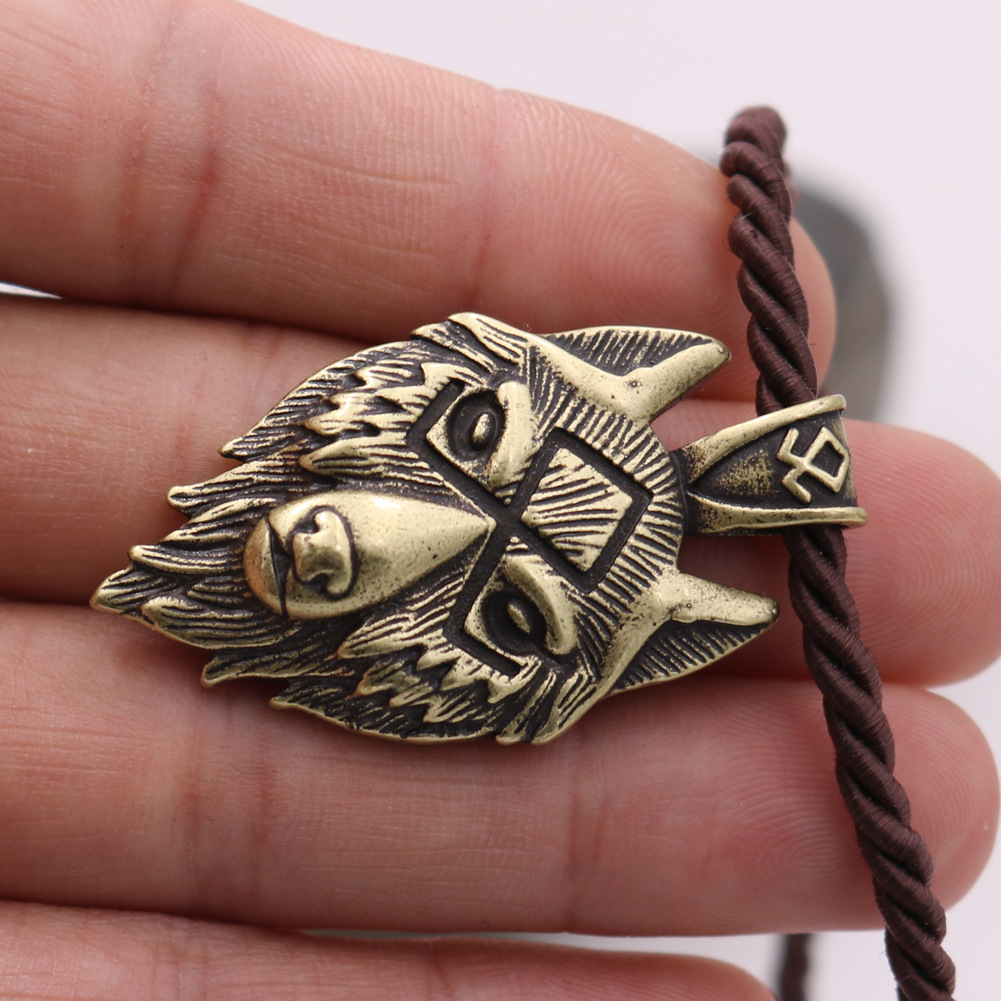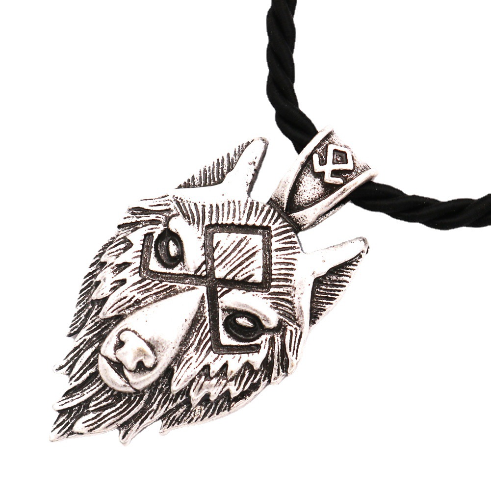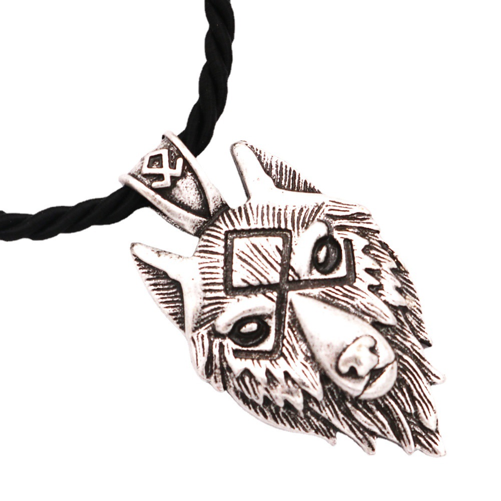 Viking Wolf Head Metal Necklace Luna Rune Amulet