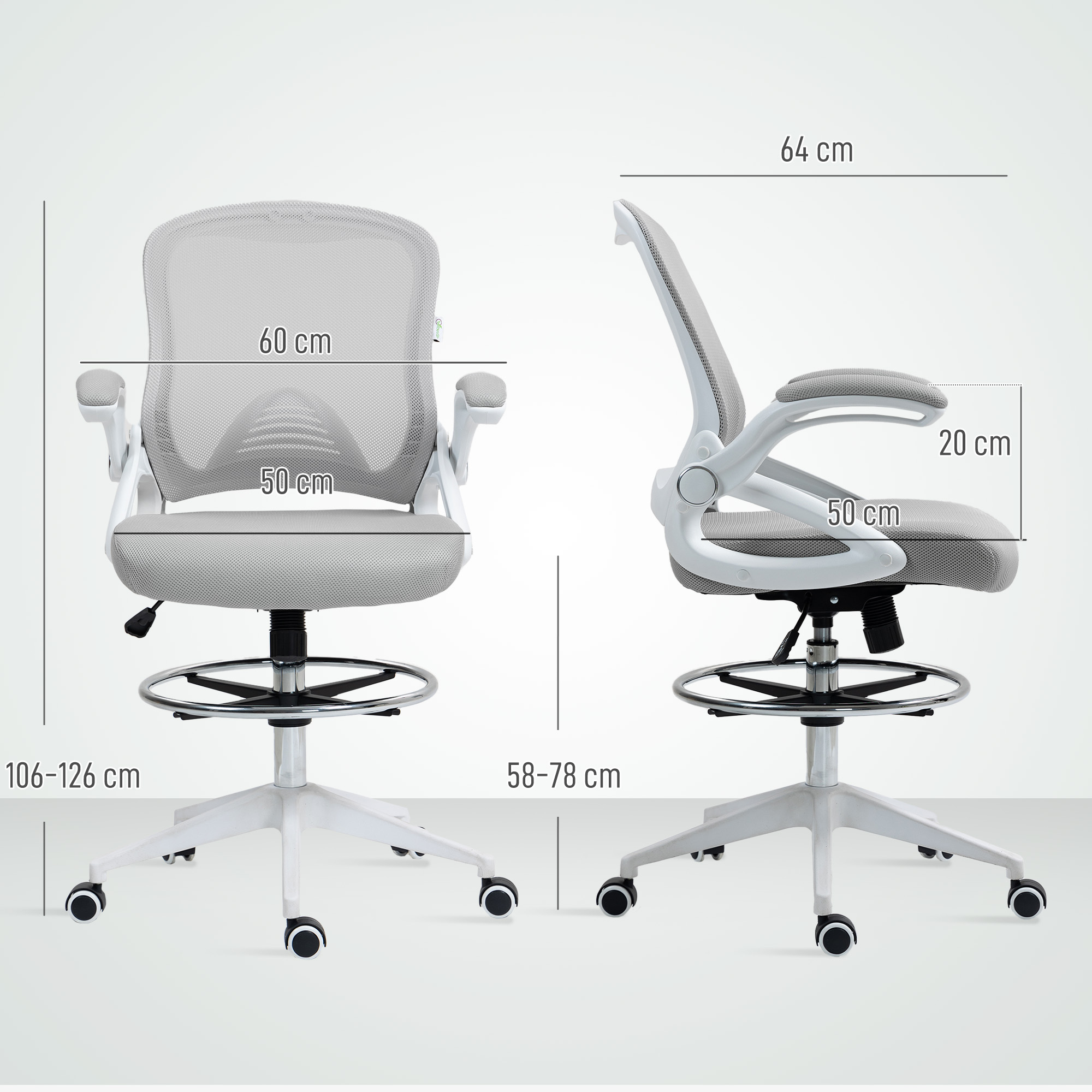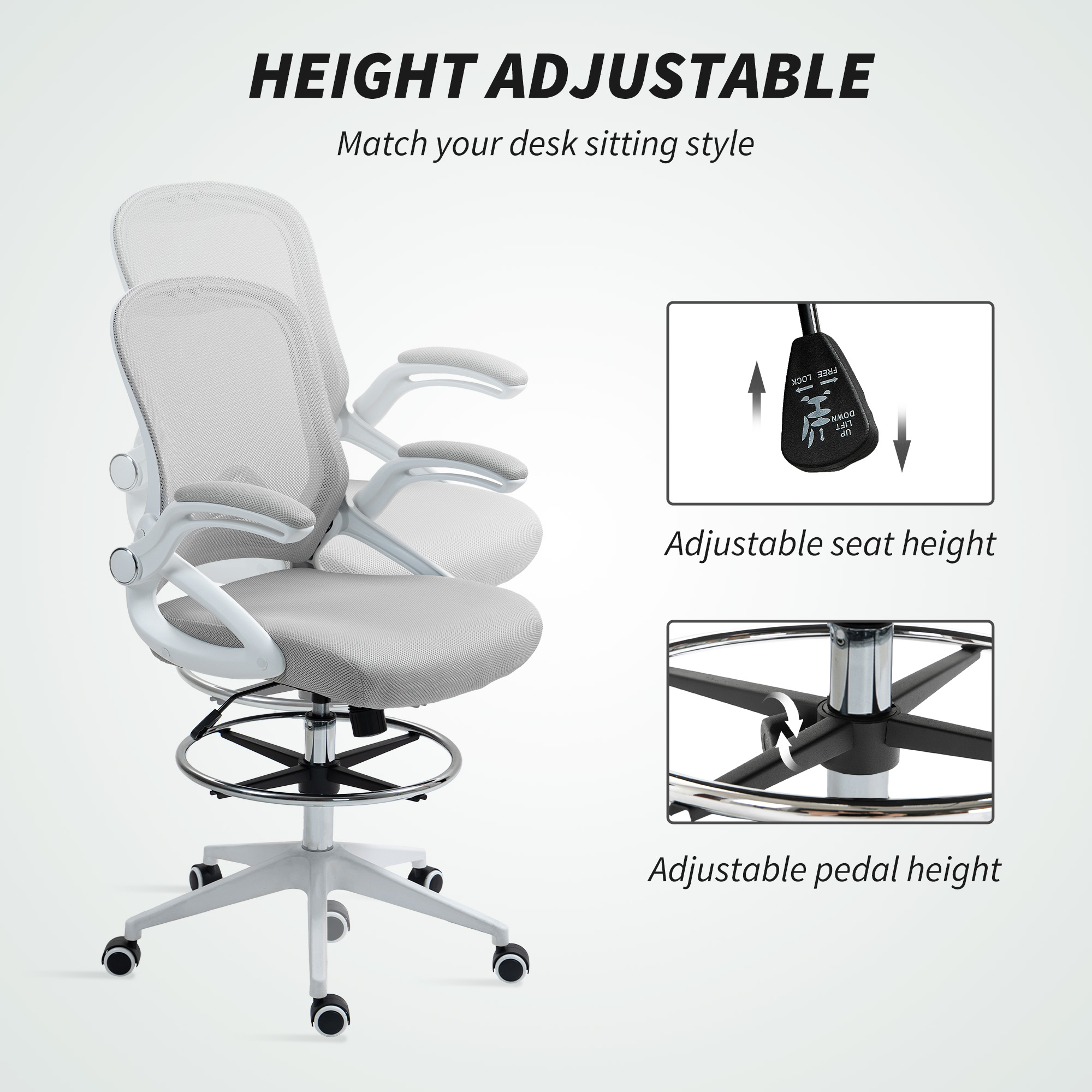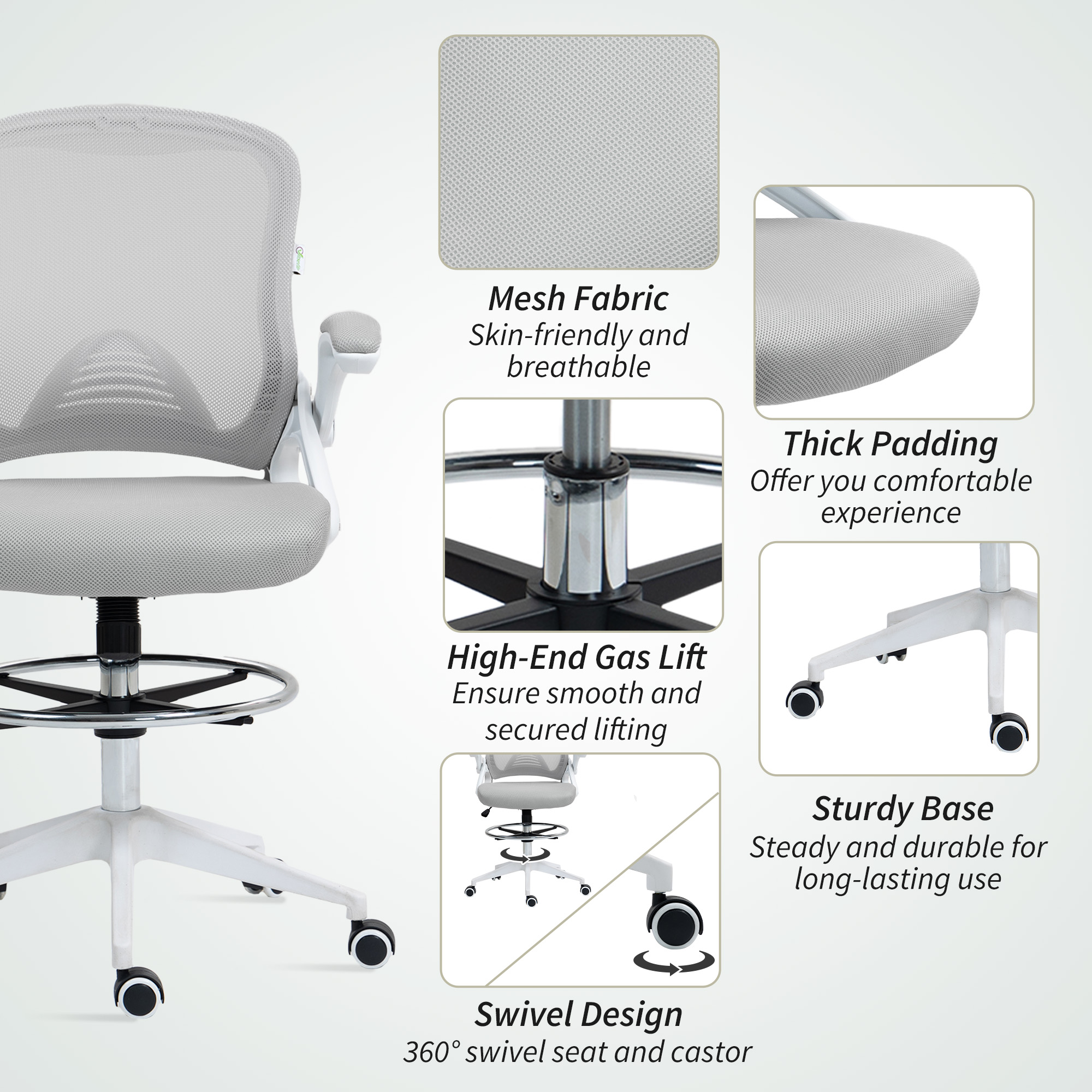 Vinsetto Drafting Chair With Flip-up Armrest, Mesh Office Stool With Foot Ring, 360 Degree Swivel Height Adjustable Chair For Standing Desk, Light Grey