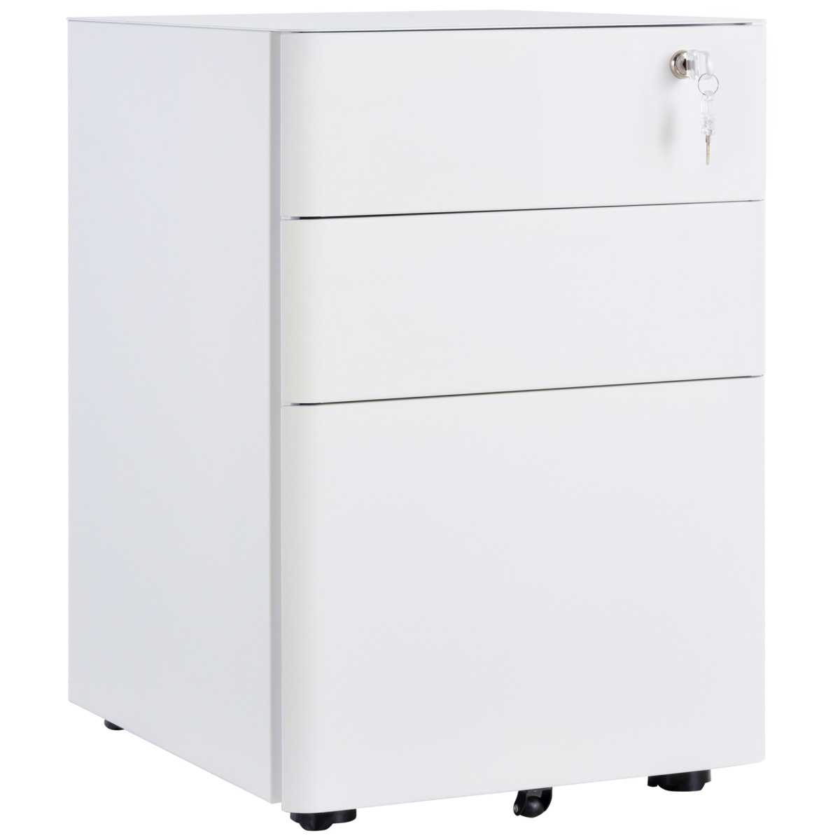 Vinsetto Lockable Cabinet, Rolling Filing Cabinet With 3 Drawers, Steel Office Drawer Unit For A4, Letter, Legal Sized Files