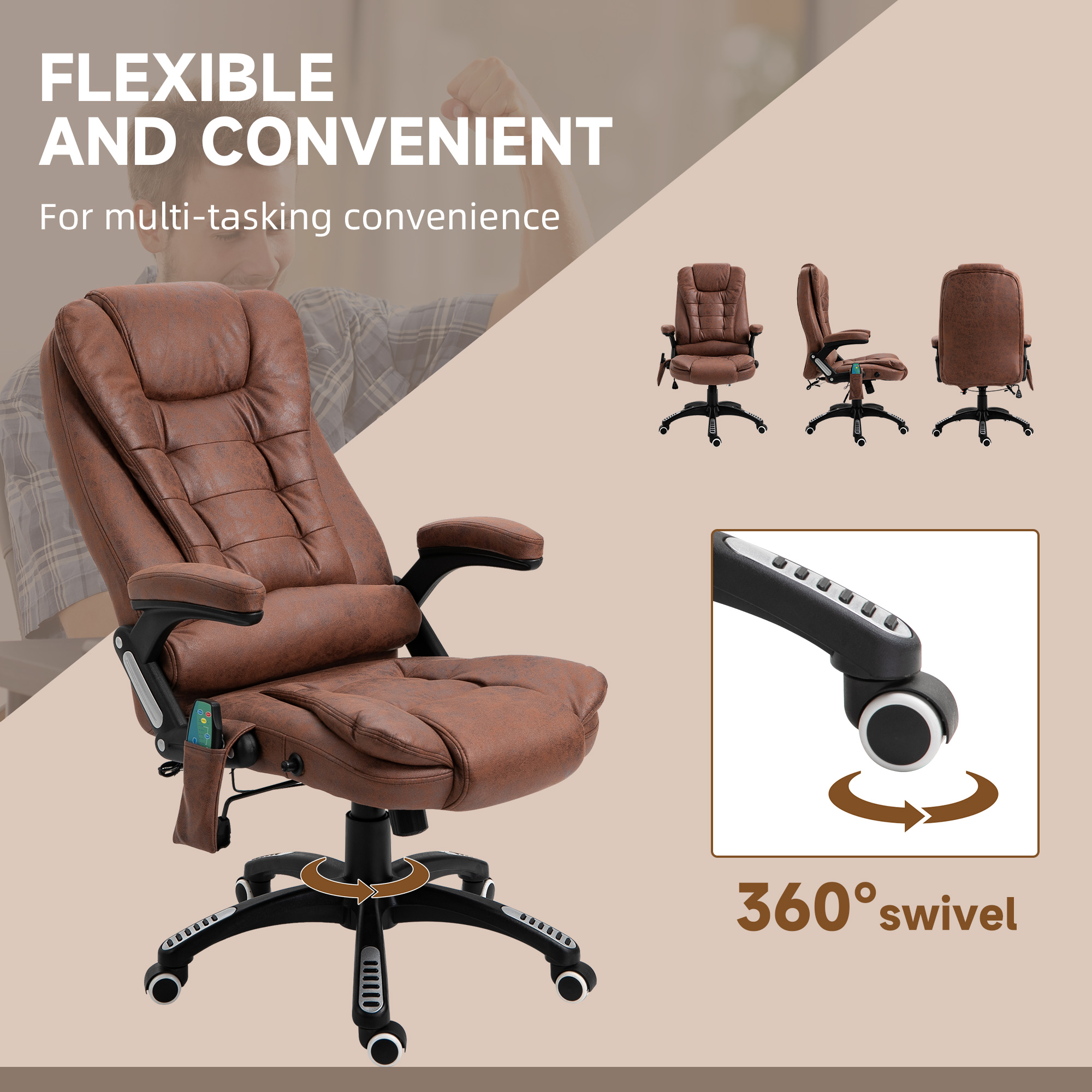 A reclining office chair, which also melts away aches and pains. This Vinsetto chair features six massage points and a heating function - soothing your body gently, whenever you want. Back reclines to maximum 130° angle - lay back and relax whilst being massaged too. Padded all over for comfort. Height adjustable between 107-116cm, making it easy to sit at a level best for you.