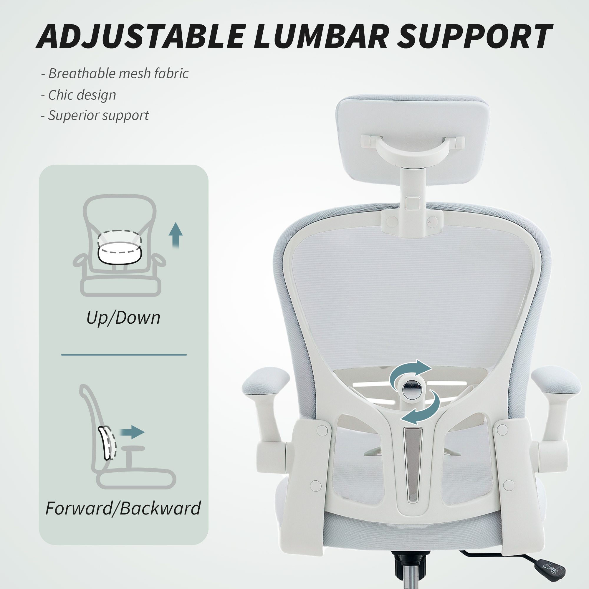 Adjust office comfort your way. This Vinsetto chair comes in a fully flexible design: look to the lumbar support which moves up/down and forwards/backwards, along with the headrest which rotates and moves up/down; pair this with the adjustable tension and 43-51cm seat height. It's comfortable too, thanks to the padded seat and mesh back. Complete with five wheels, this swivel chair moves around easily.
