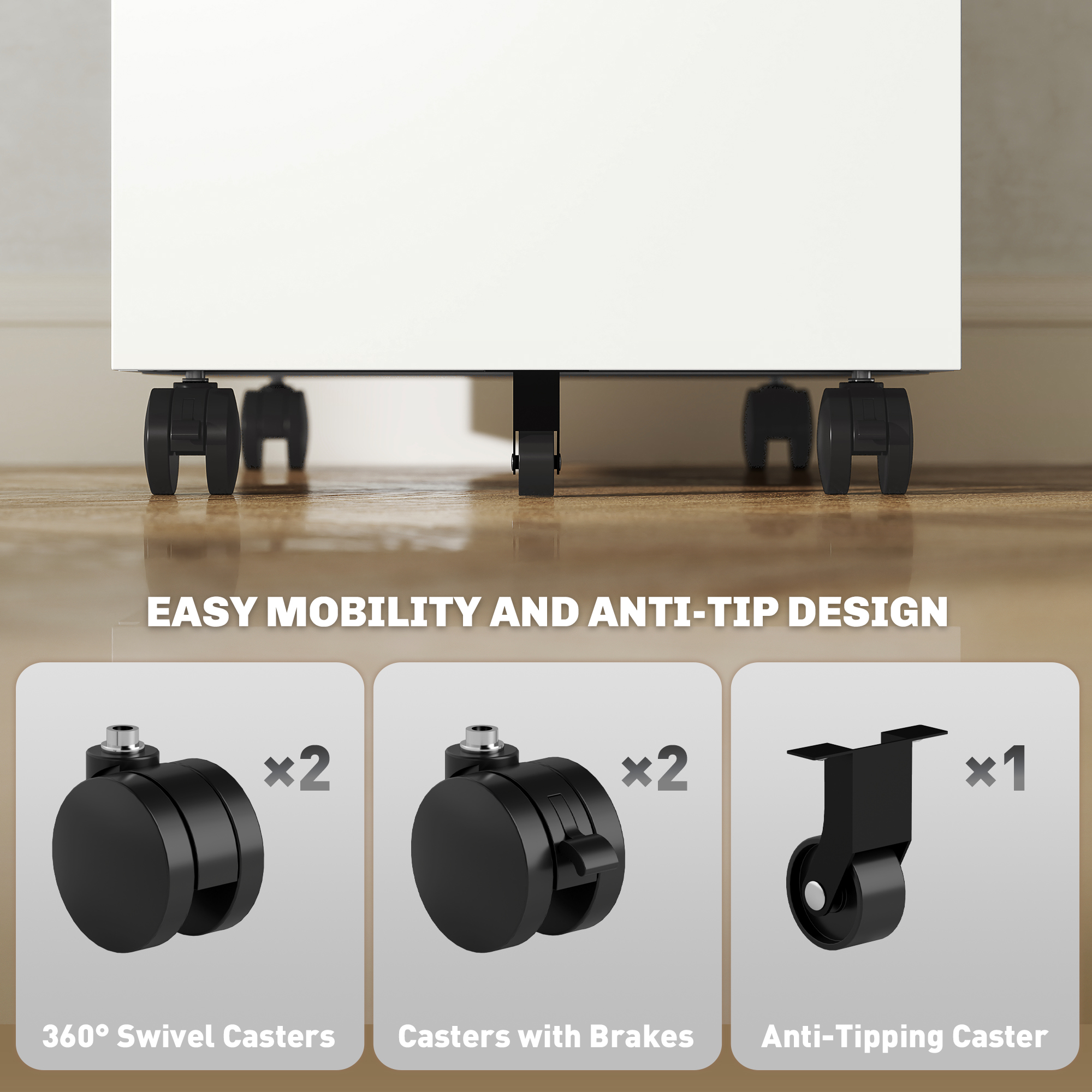 Easy office organisation, in a protective shell, with this Vinsetto filing cabinet. A compact design to fit snuggly underneath your desk, it features two small drawers with a removable pencil tray and a large drawer - plenty of space for files and more. The bottom rail has an adjustable rail for A4, legal and letter files. Complete with wheels to move unit around easily.