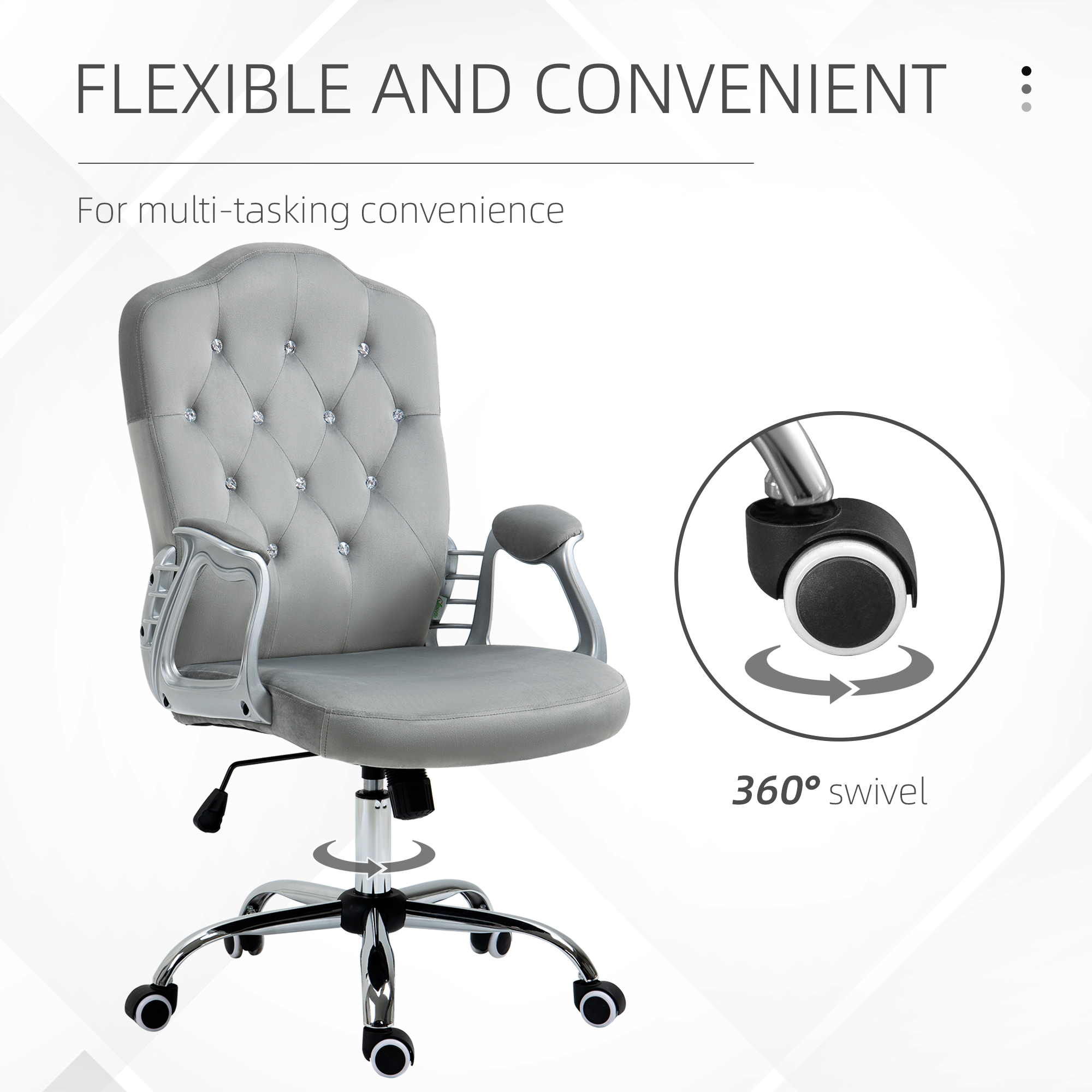 Inject a touch of glam and sophistication into your work day with this Vinsetto computer chair. Comfortable features include the thick padding, the adjustable tension back and armrests. Wrapped in velvet-feel upholstery, the back is scattered with an abundance of diamantes for top glamour. Completed with five wheels for easy movement. This comfortable office chair is a sparkling addition to your home office.