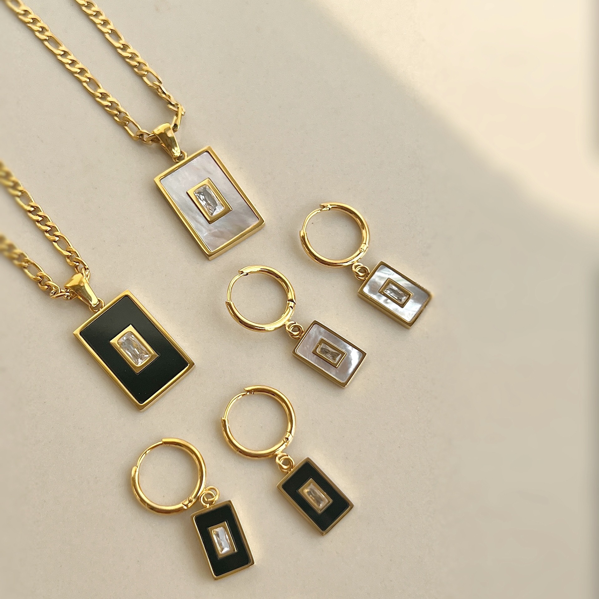Color: 45 5cm. Black pendant necklace, 45 5cm. White pendant necklace, black pendant earrings, White pendant earrings