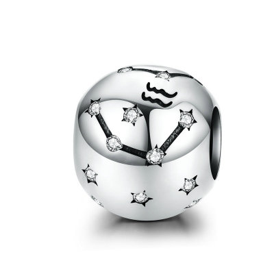 Vintage 925 Sterling Silver Aquarius Star Sign Zodiac Beads Charms fit Bracelets