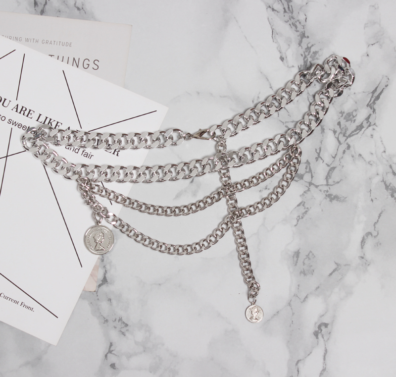 Material: metalWaistband: length/97 width/1.6Chain: coarse chain
