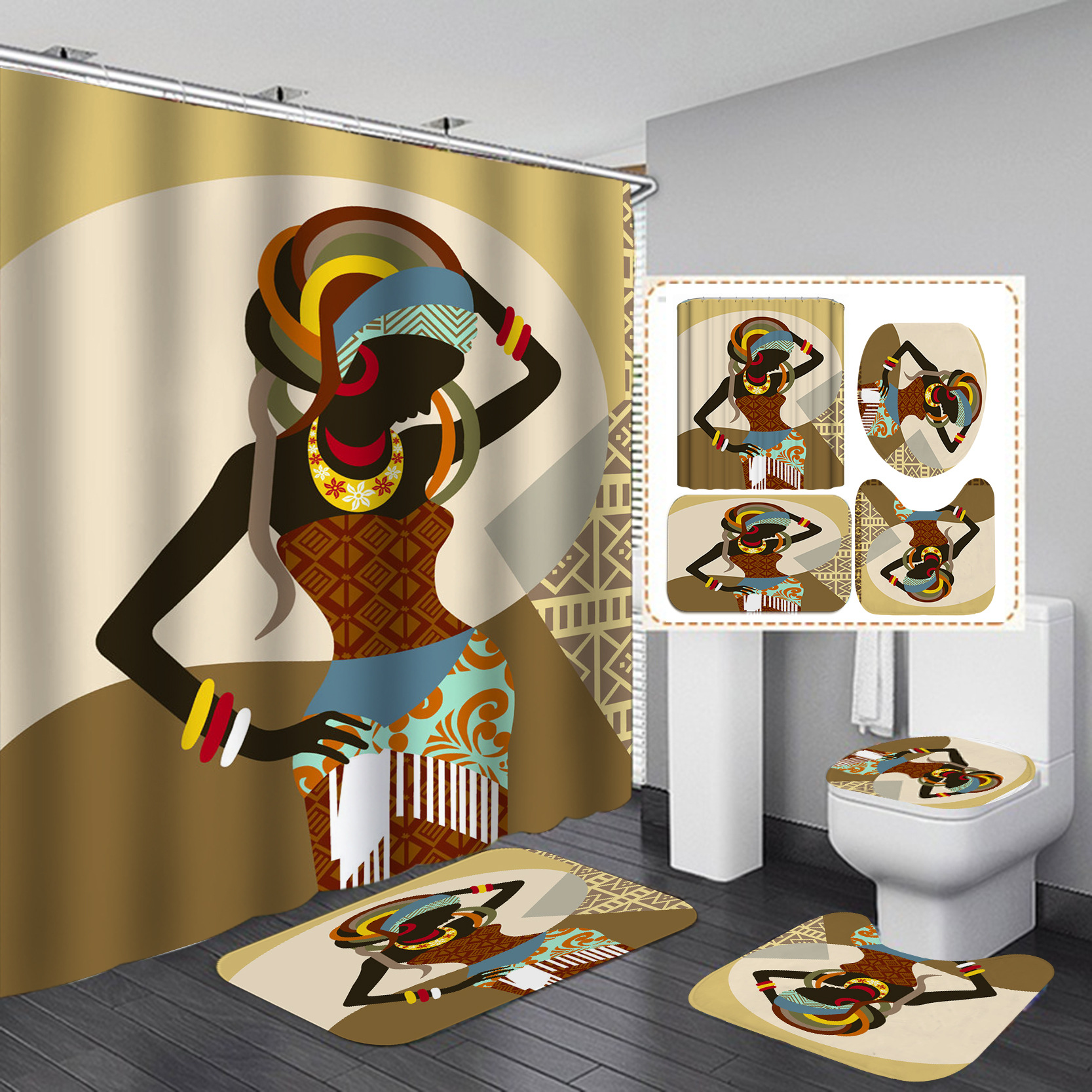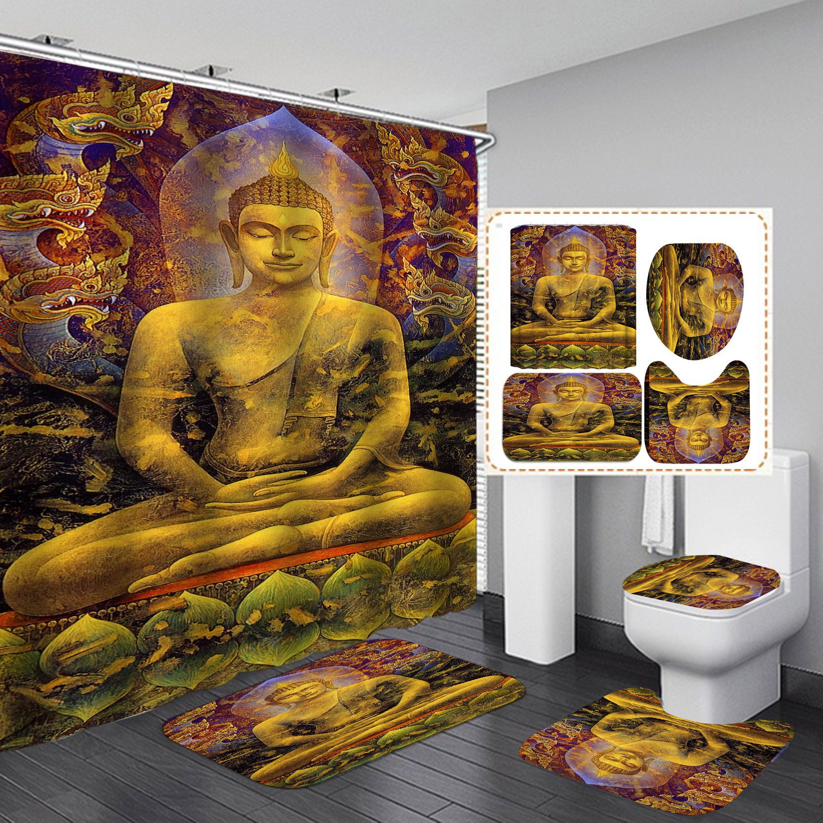 Specifications: 90*180-240g, 120*180-300g, 150*180-320g, 165*180-360g, 180*180-380g, 180*200-420g, three-piece toilet cover+ U-shaped mat + floor mat, floor mat 45*75, customized size, four-piece set (180*180 shower curtain + toilet cover + u-shaped mat + floor mat)
