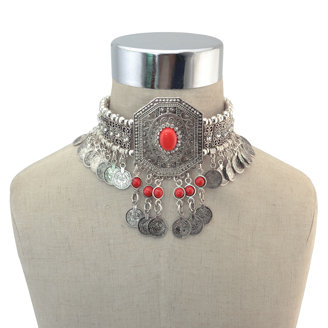 Vintage Alloy Carved Necklace, Ancient Coin Clavicle Chain