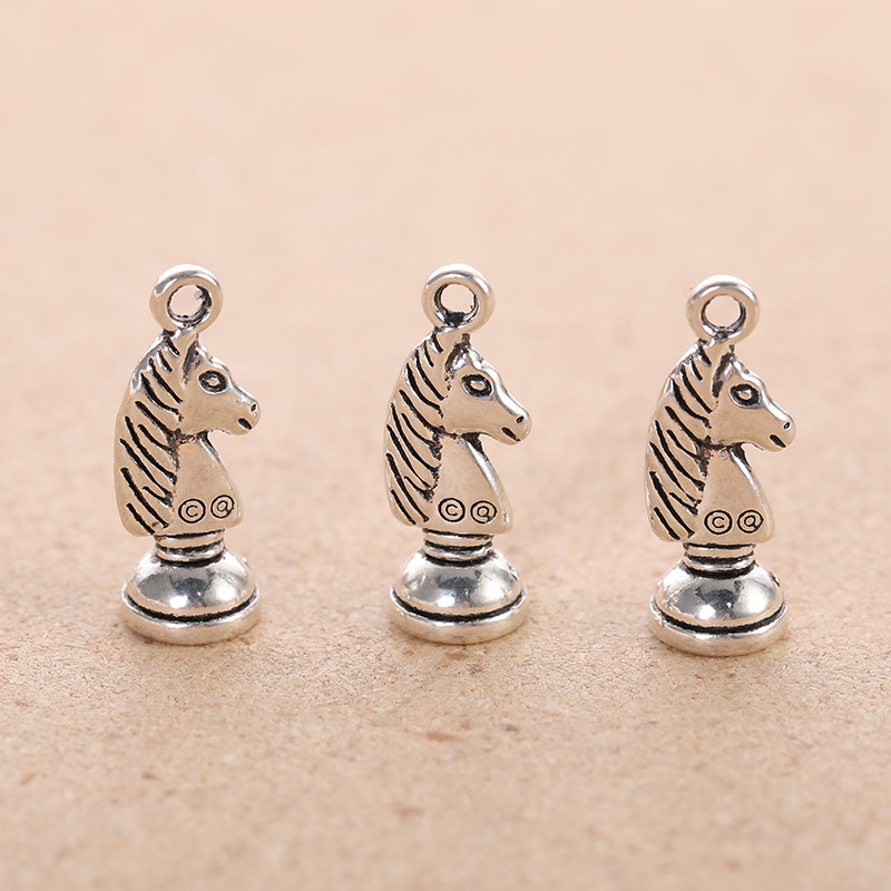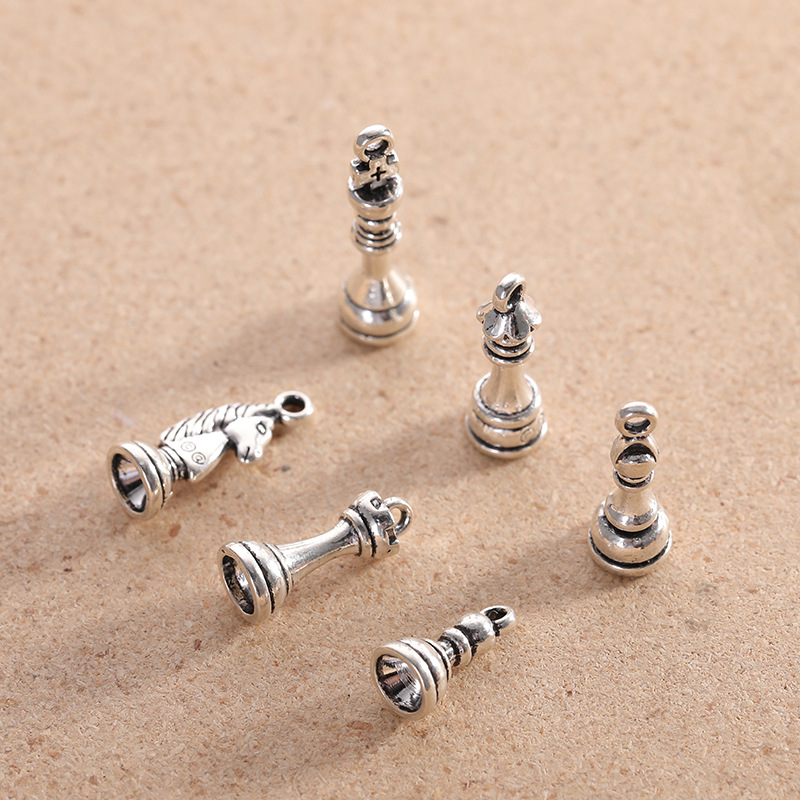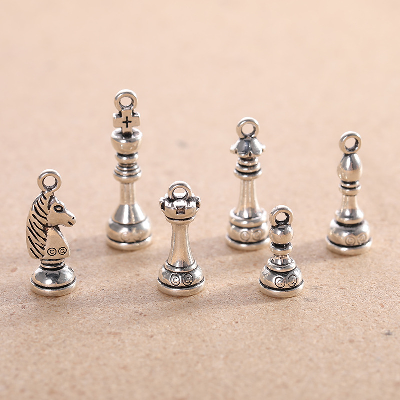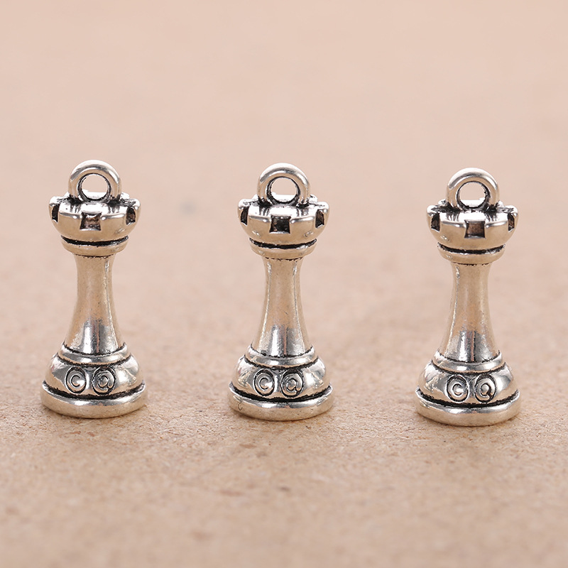 Vintage Alloy Jewelry Accessories Antique Silver Chess Pendant