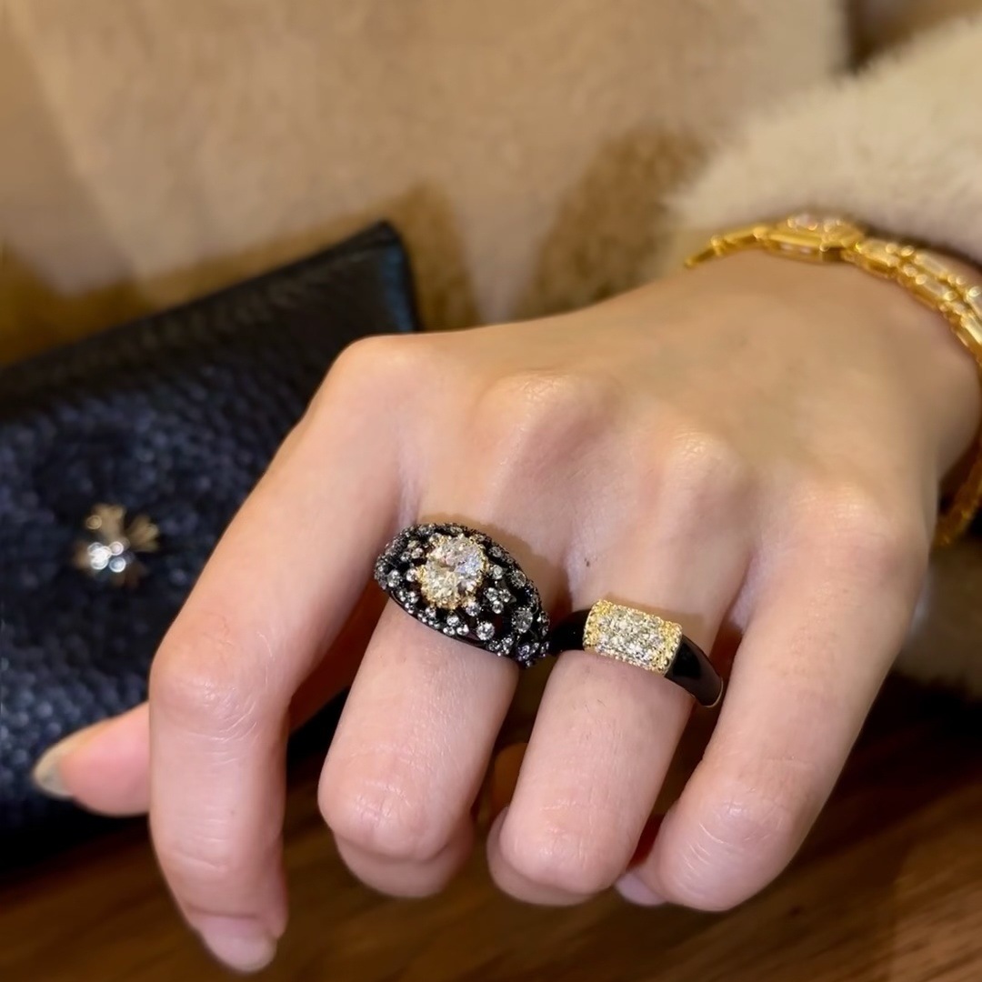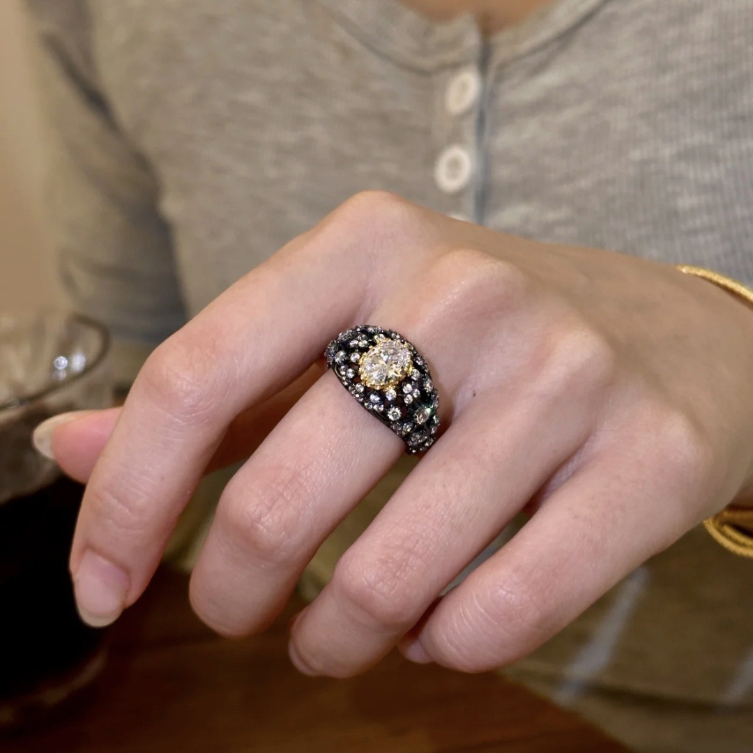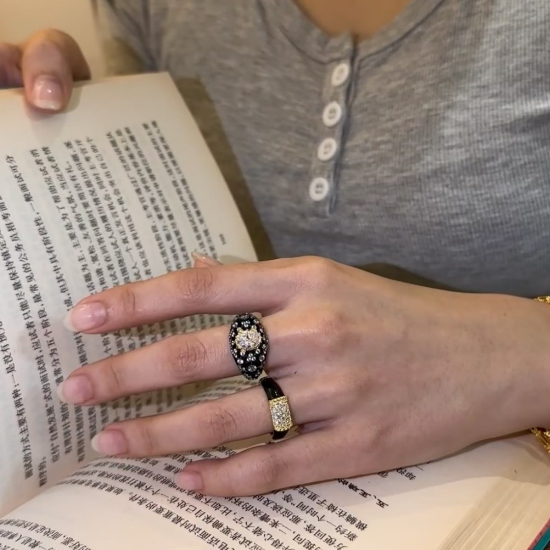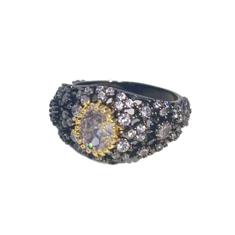 Vintage Black Gold Oval Ring With Sparkling Diamonds For Women