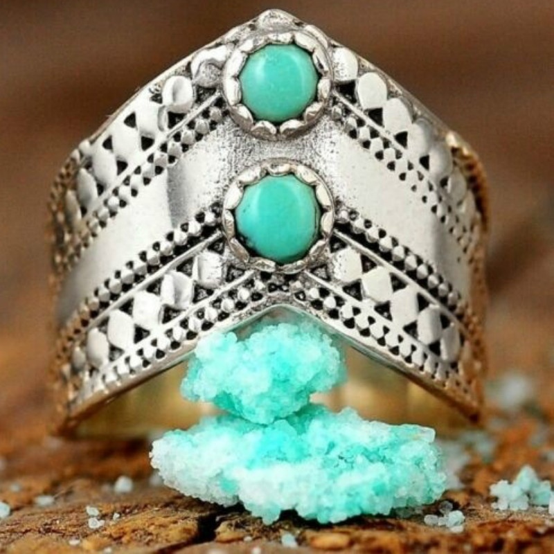 Vintage Bohemian Turquoise Irregular Ring