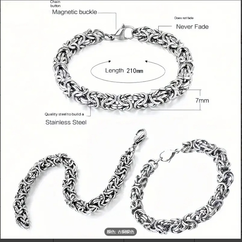 Vintage Braided Titanium Steel Bracelet For Men - Hip Hop Minimalist Chain Style, Durable Stainless Steel Handmade Link Brace