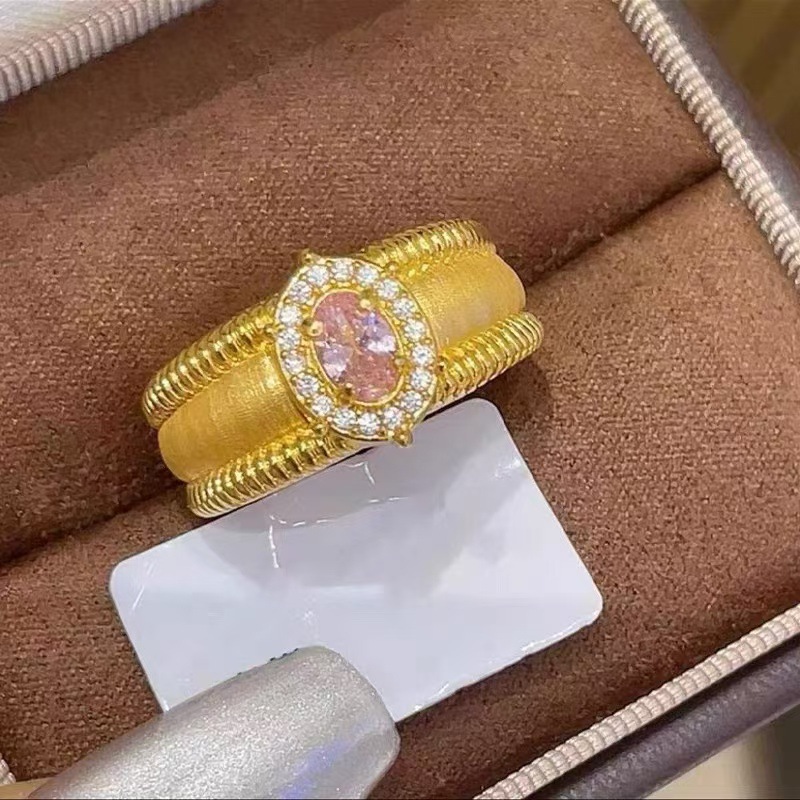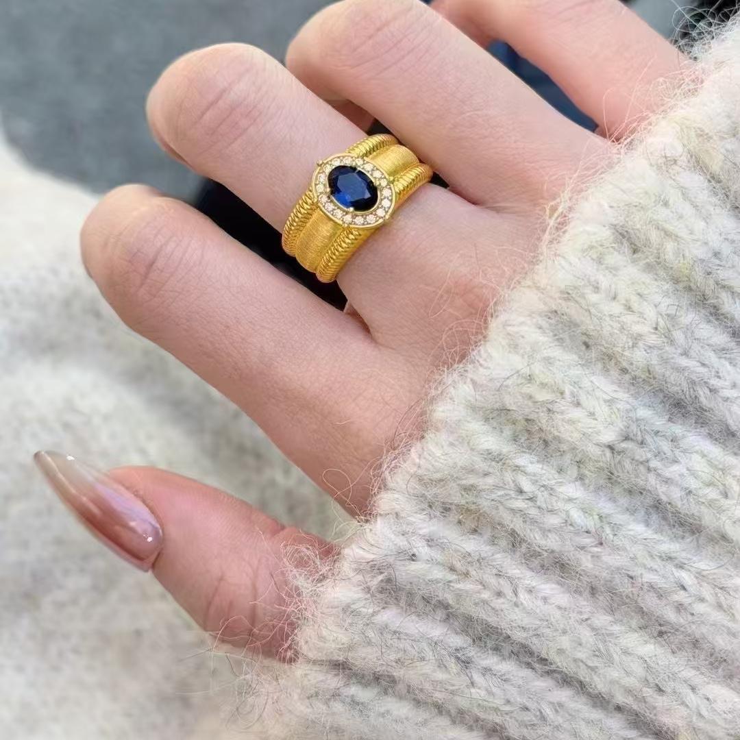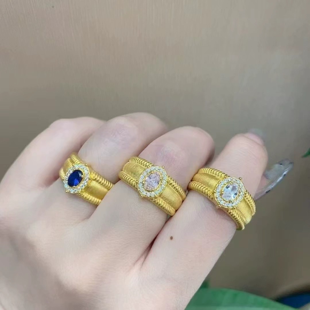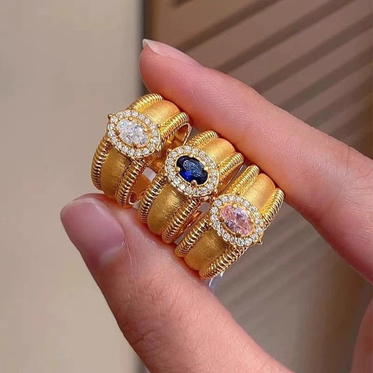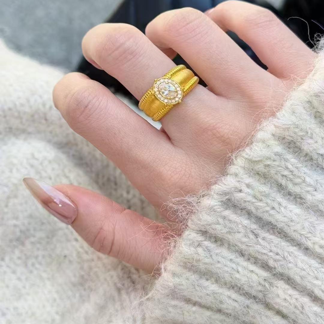 Vintage Brushed Wide Band Bead Ring, Sparkling Zircon Adjustable Open Ring, Court Style For Women