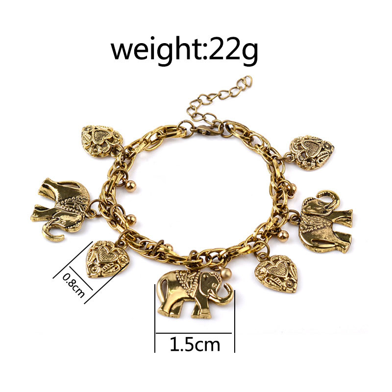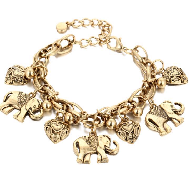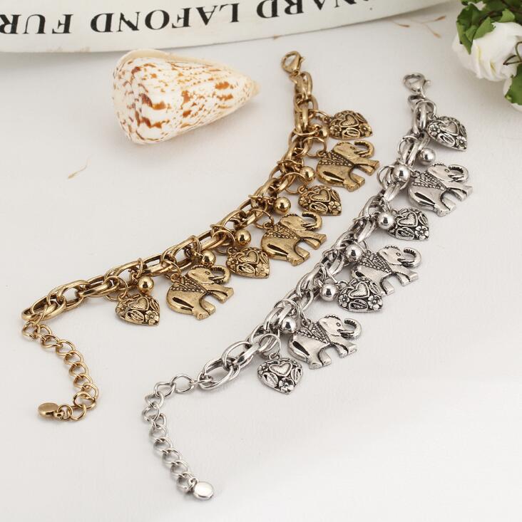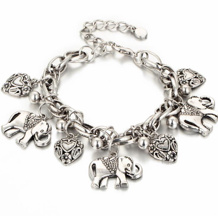 Polished bracelet with elephant pendant and heart charm.