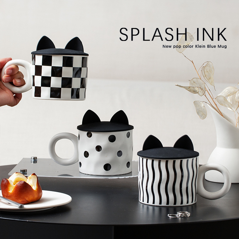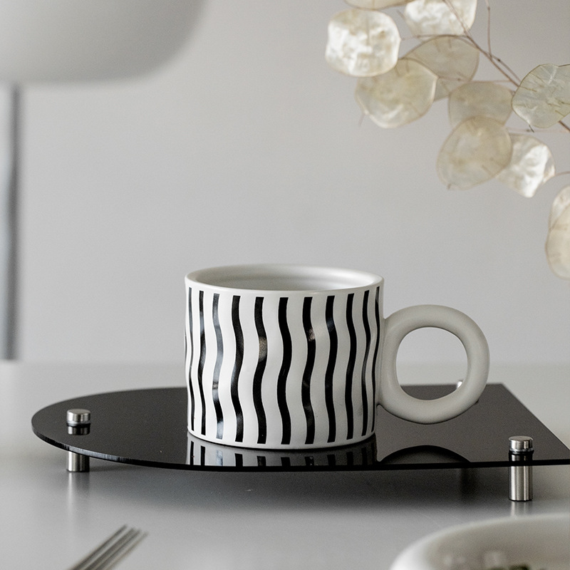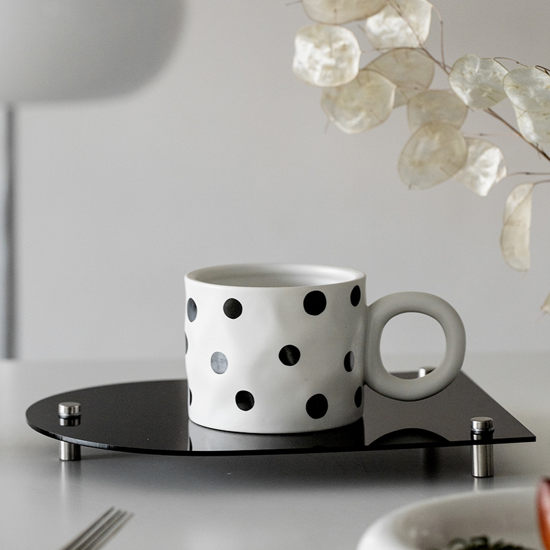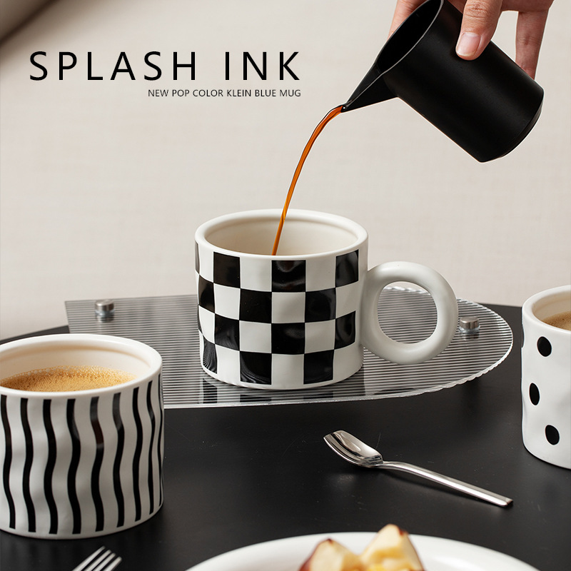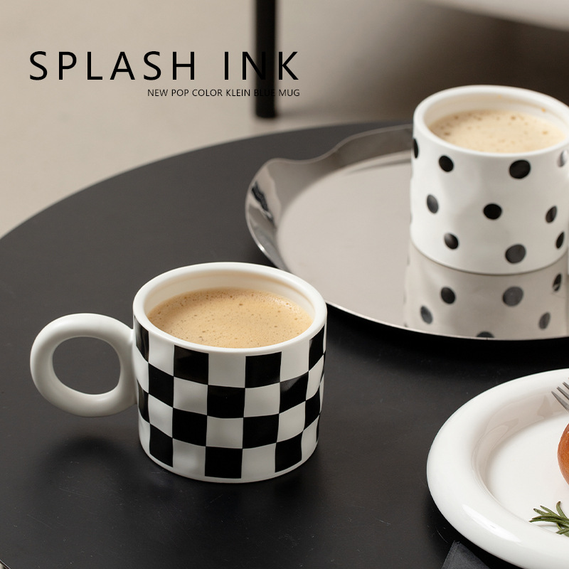 Color: geometric corrugated mug, black and white polka dot mug, checkerboard mug, geometric corrugated mug cover, black and white polka dot mug cover, checkerboard mug cover
