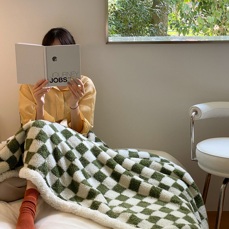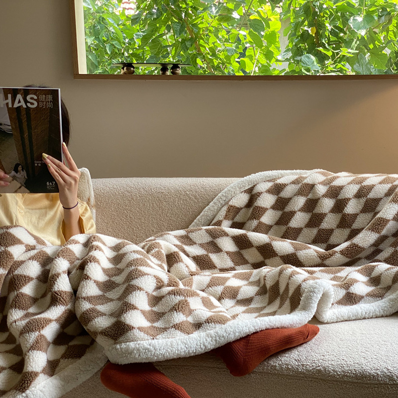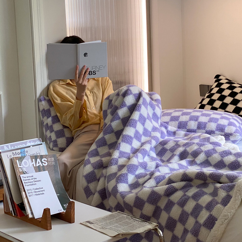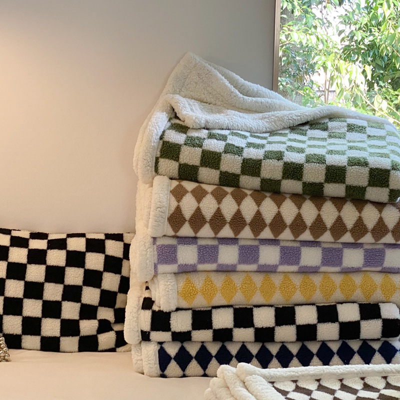 Color: chessboard plaid black and white [lamb woolen blanket], rhombus mocha color [lamb woolen blanket], rhombus goose yellow [lamb woolen blanket], chessboard Plaid turquoise [lamb woolen blanket], rhombus dark blue [woolen blanket]], diamond dark coffee [woolen blanket], checkerboard purple [woolen blanket]]
