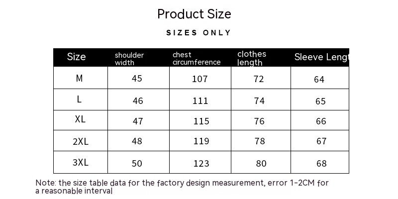 Size: M L XL 2XL 3XL