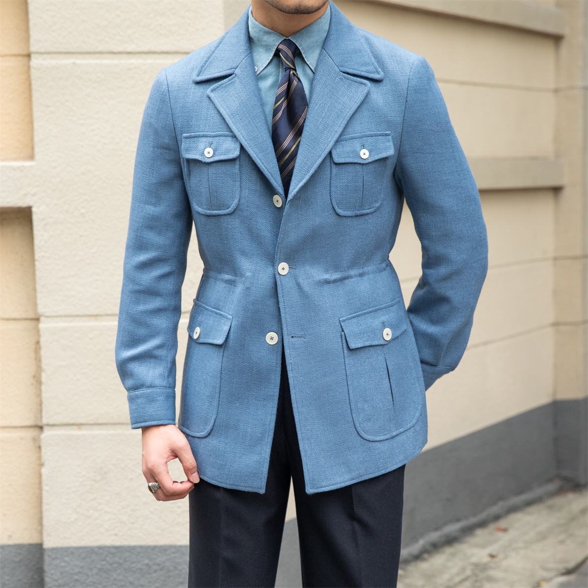 Front flap: single breasted