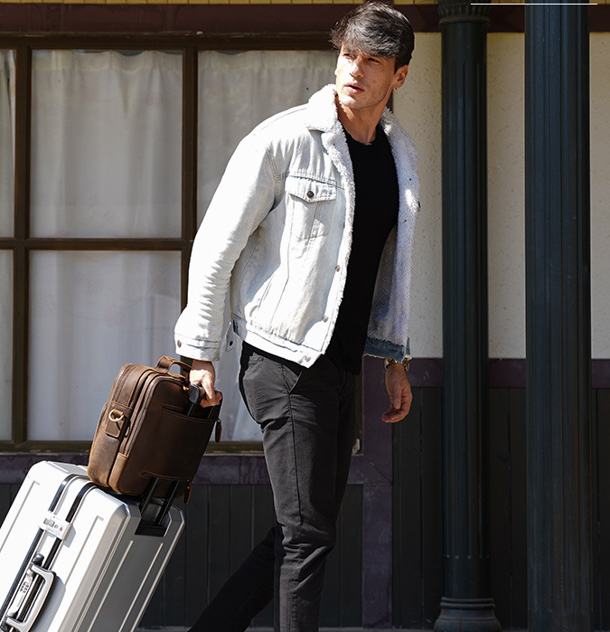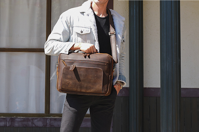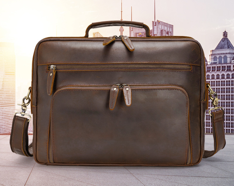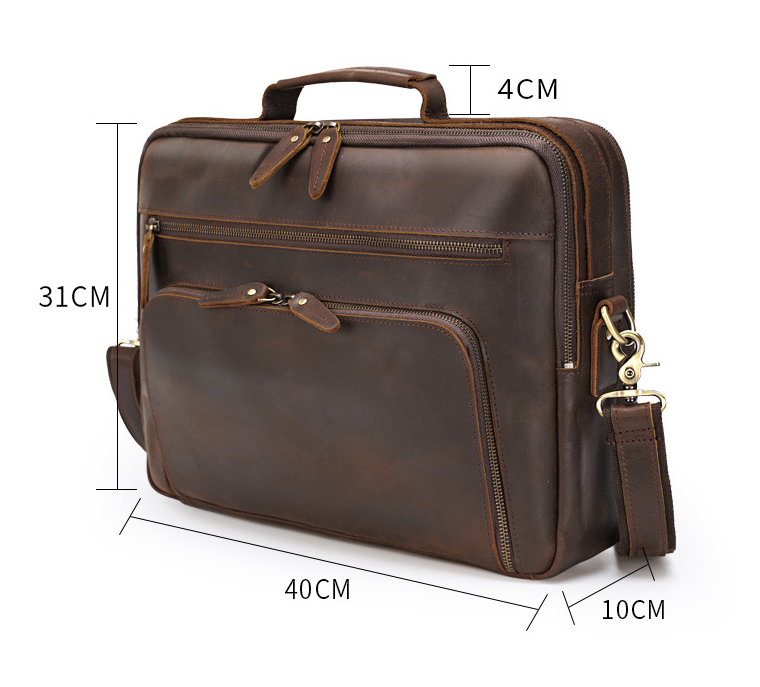 Vintage Crazy Horse Leather Men's Briefcase Laptop Bag