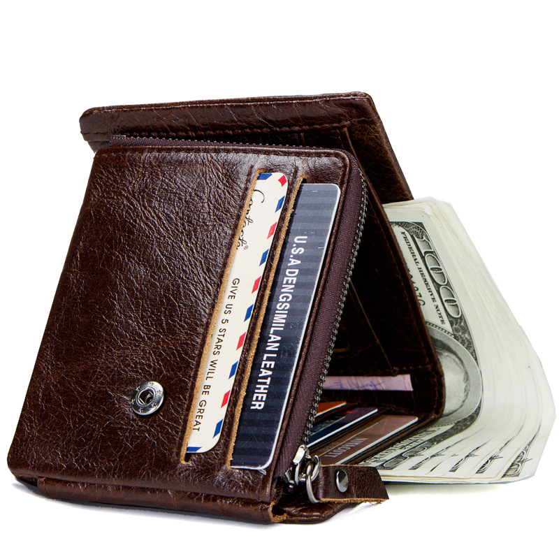 Material: CowhideStyle: SimpleFeatures: Tri-foldColour: Coffee